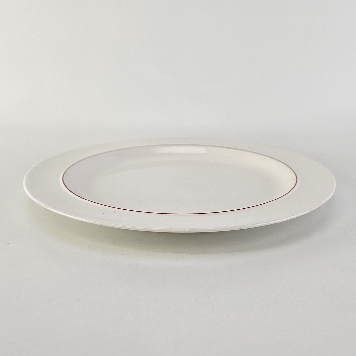 Middagstallerken i fajance fra stellet 4 All Seasons med rød kant