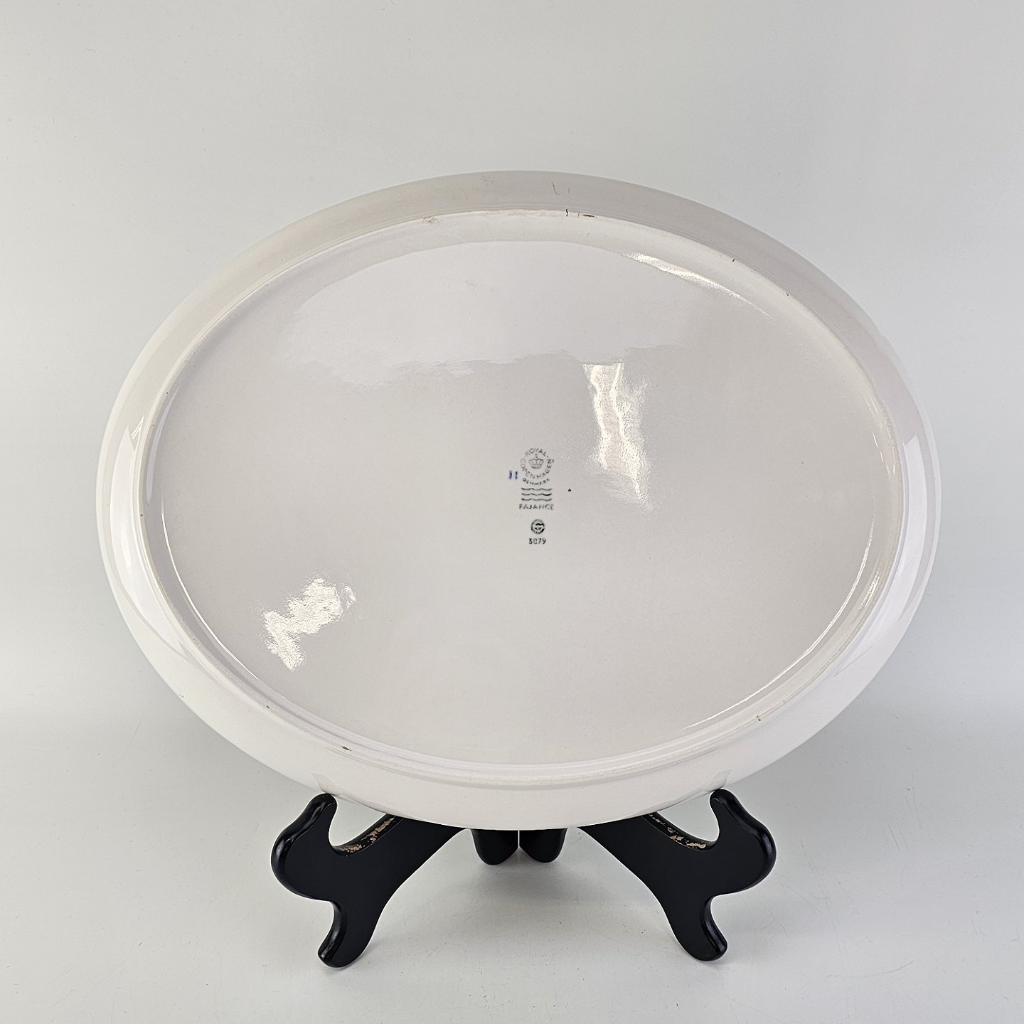 Stort ovalt fad i fajance fra stellet 4 All Seasons med rød kant