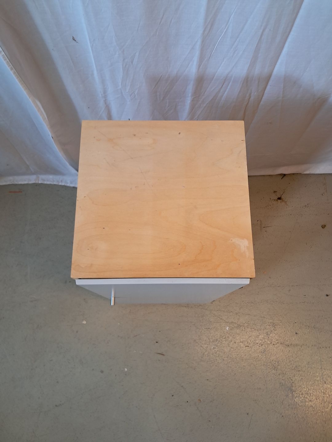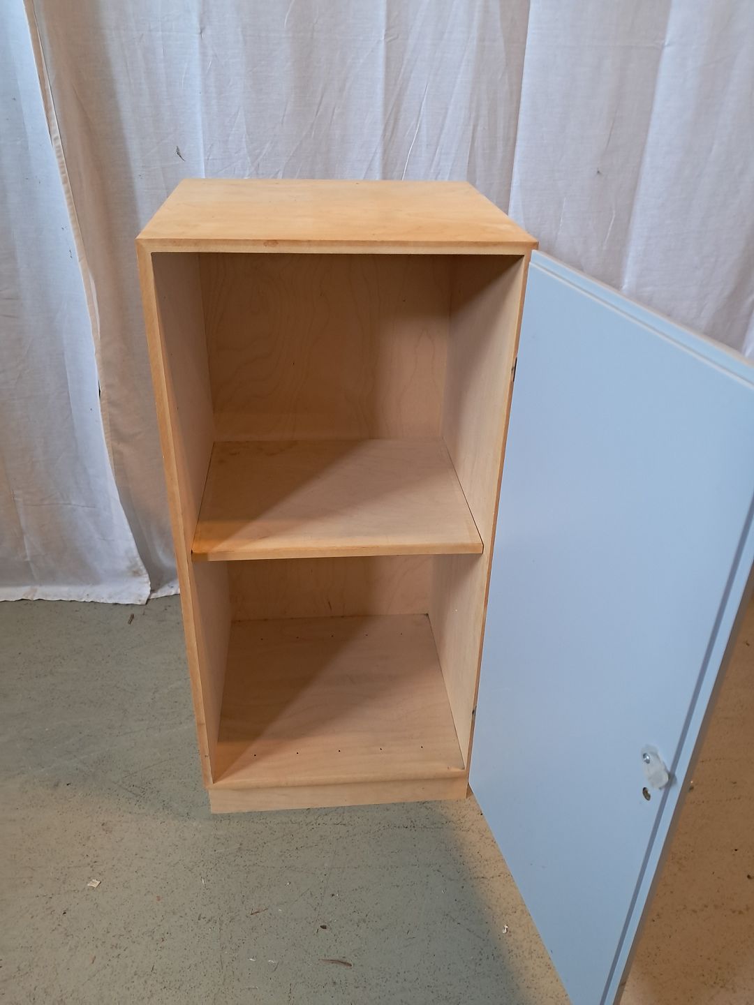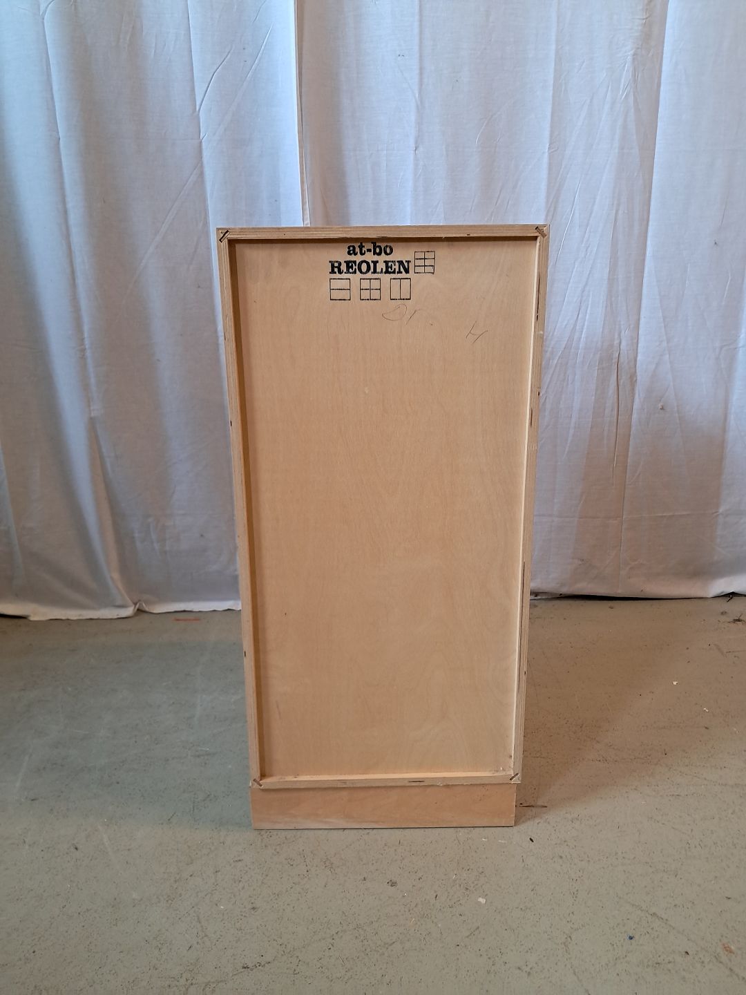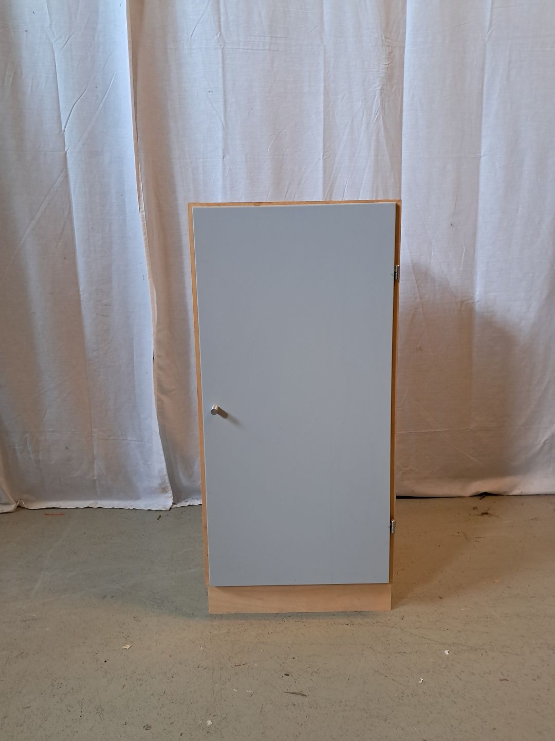 At-bo reolkasse i krydsfiner med malet låge, fra 2000erne.