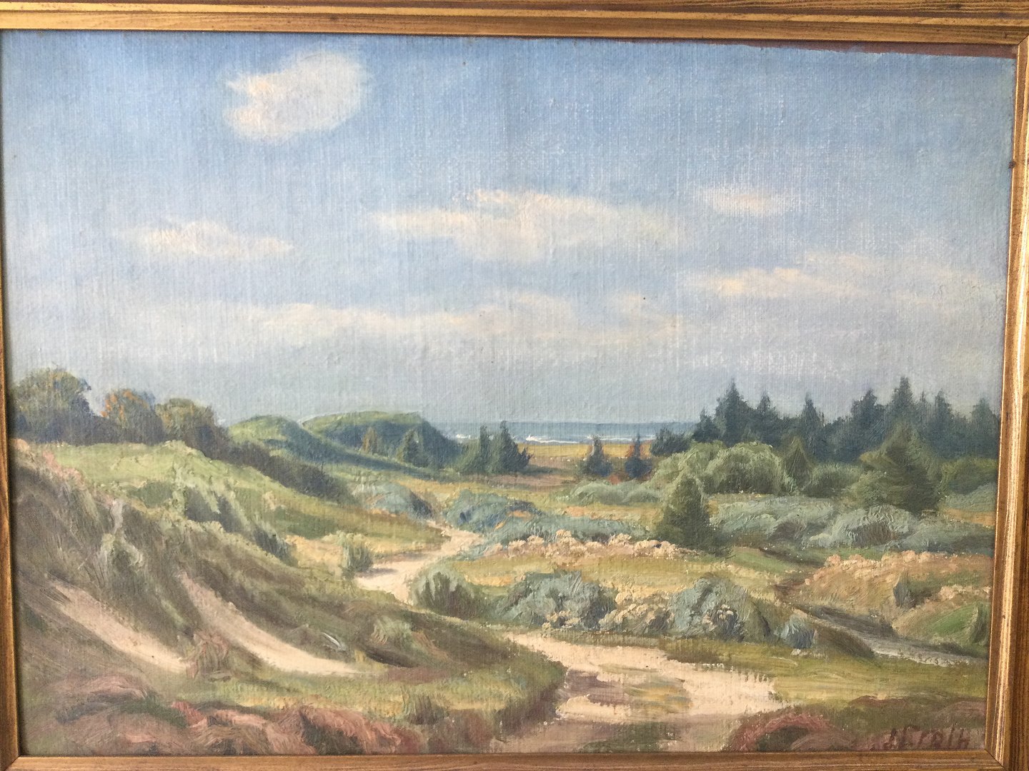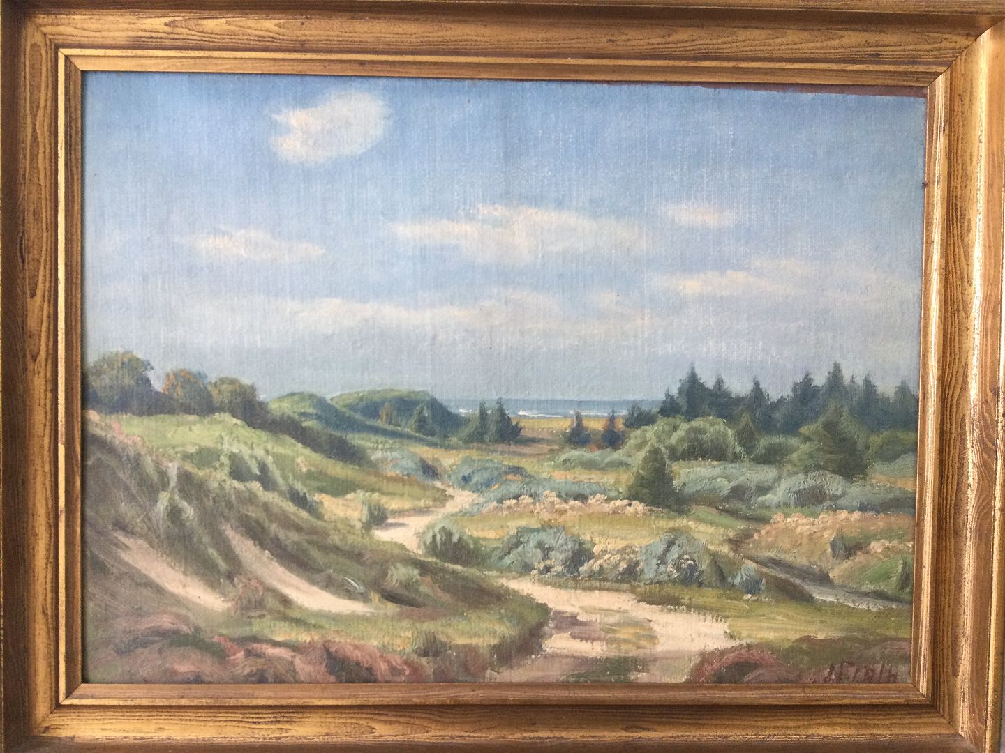 Maleri af Ingvor Groth - Klitparti med graner.