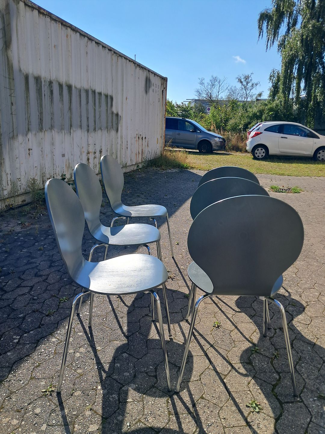 6 stole i malet træ og metal, fra 2010erne.