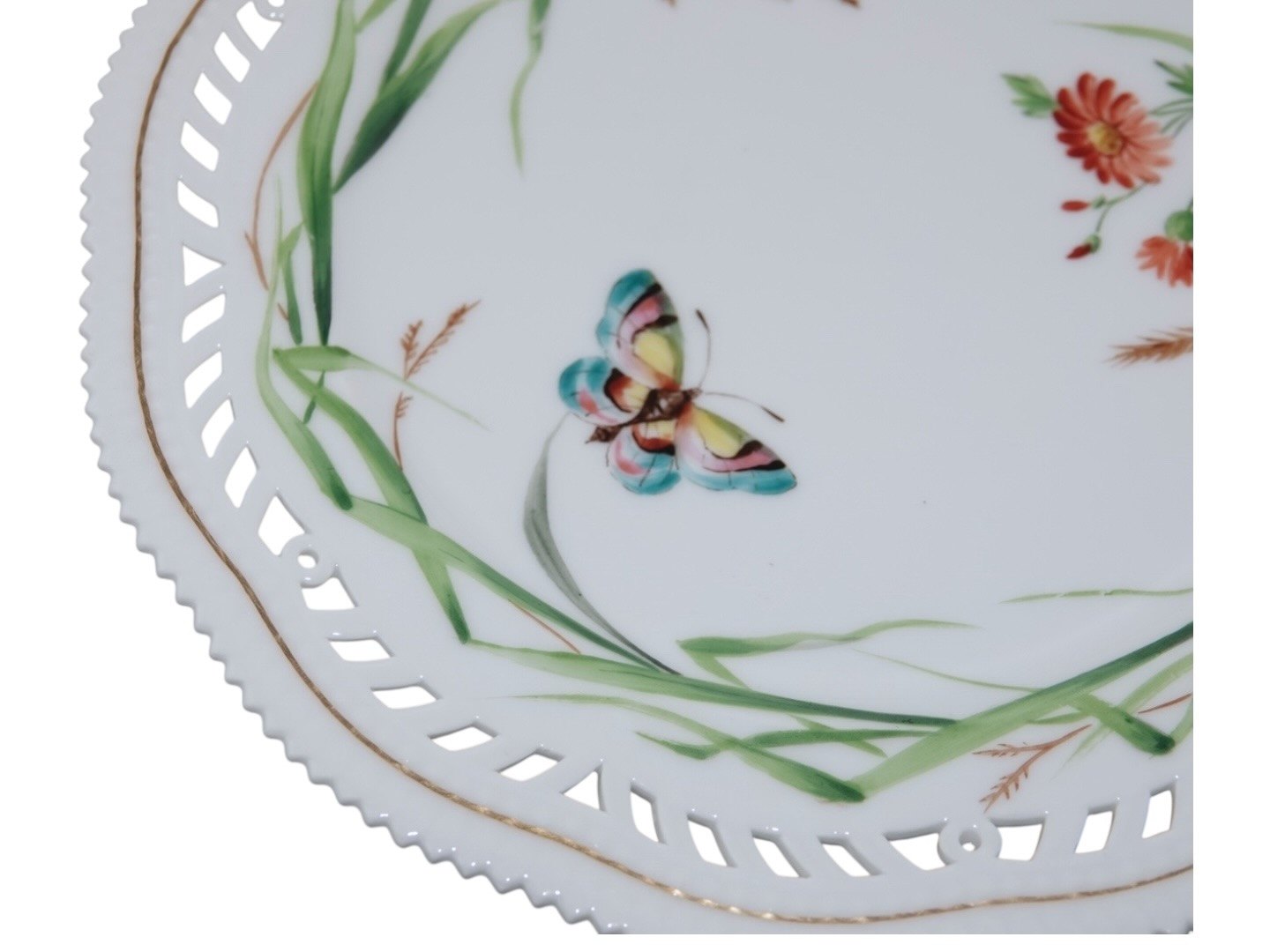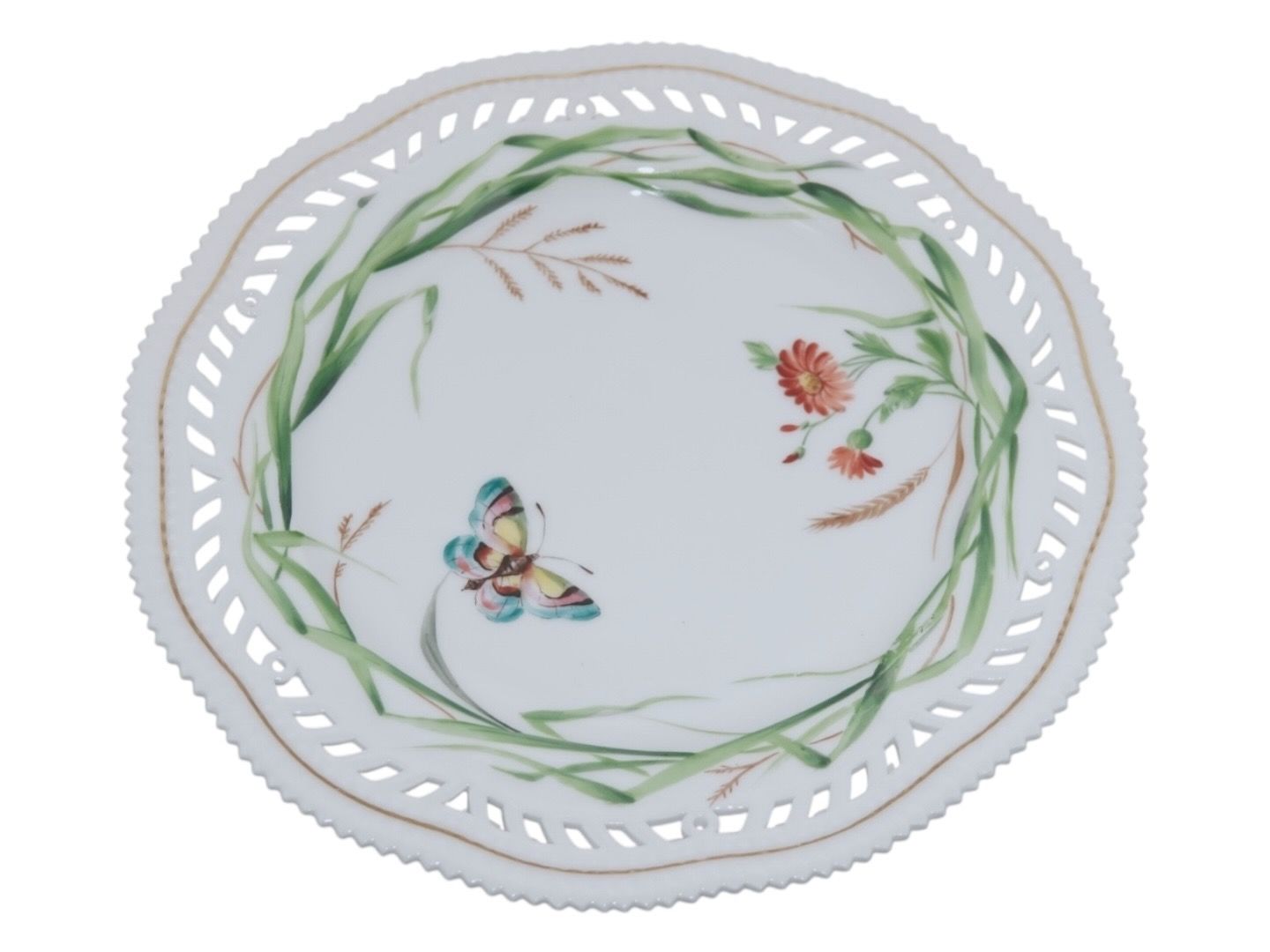 Text zugänglich auf Dänische: Royal Copenhagen Sommerfugl, frokosttallerken med gennembrudt kant.