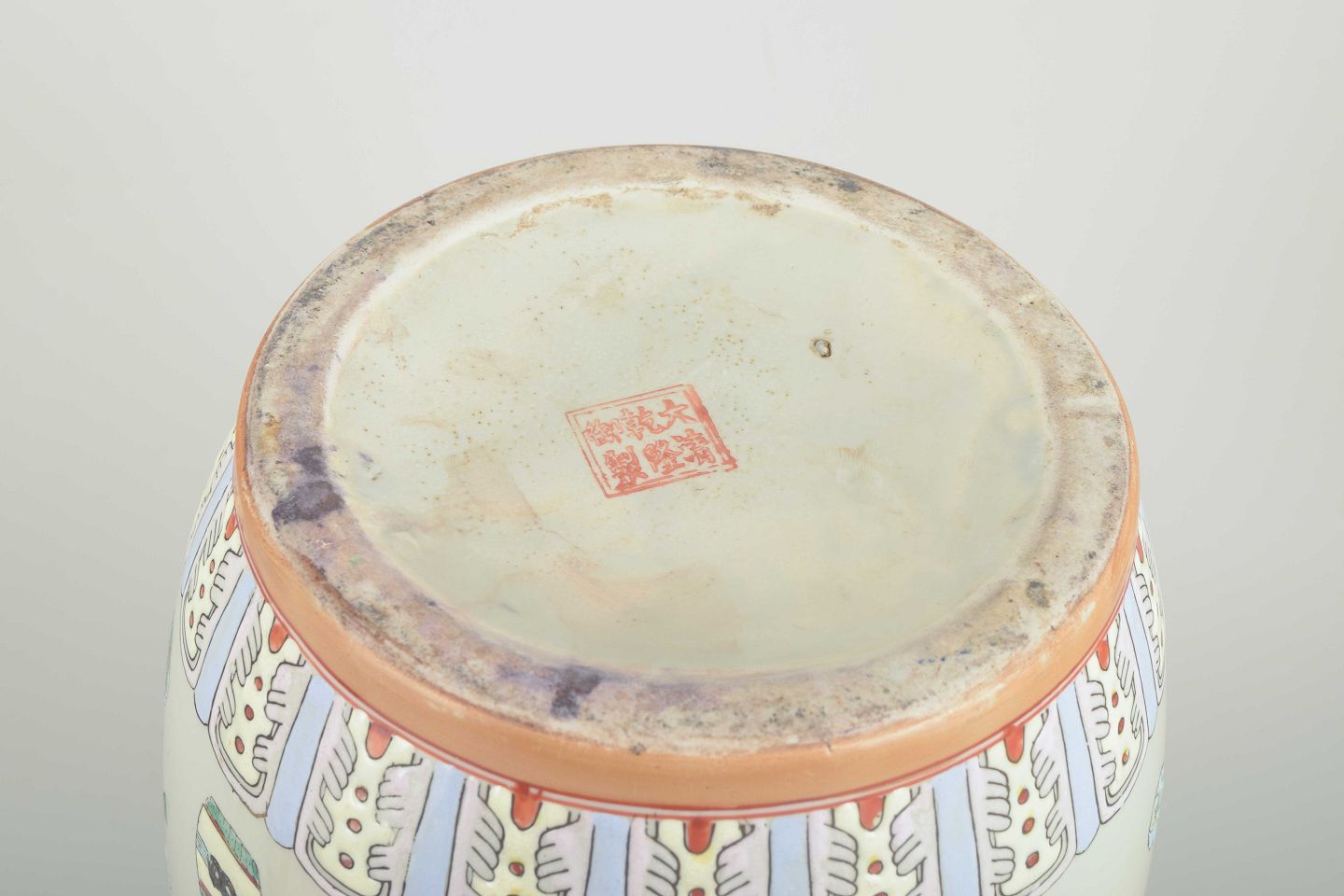 Kinesiske porcelænsvaser fra det 20. århundrede kombinerer traditionelle dekorationsformer med senere tiders produktionsteknikker. Scenedekorationer med figurer hentet fra klassisk kinesisk kulturhistorie er typiske, og guldfarvede løvehanke understreger forbindelsen til ældre kejserlige forlæg.