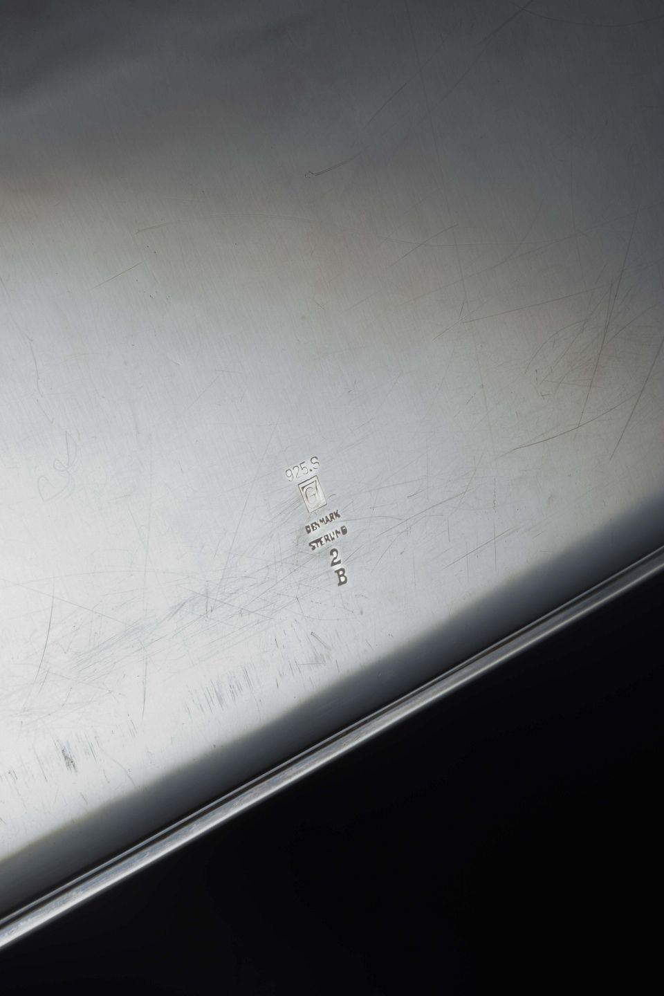 Rektangulært sølvfad med “Magnolia Blossom”-dekoration, model 2B, 1933–1944.