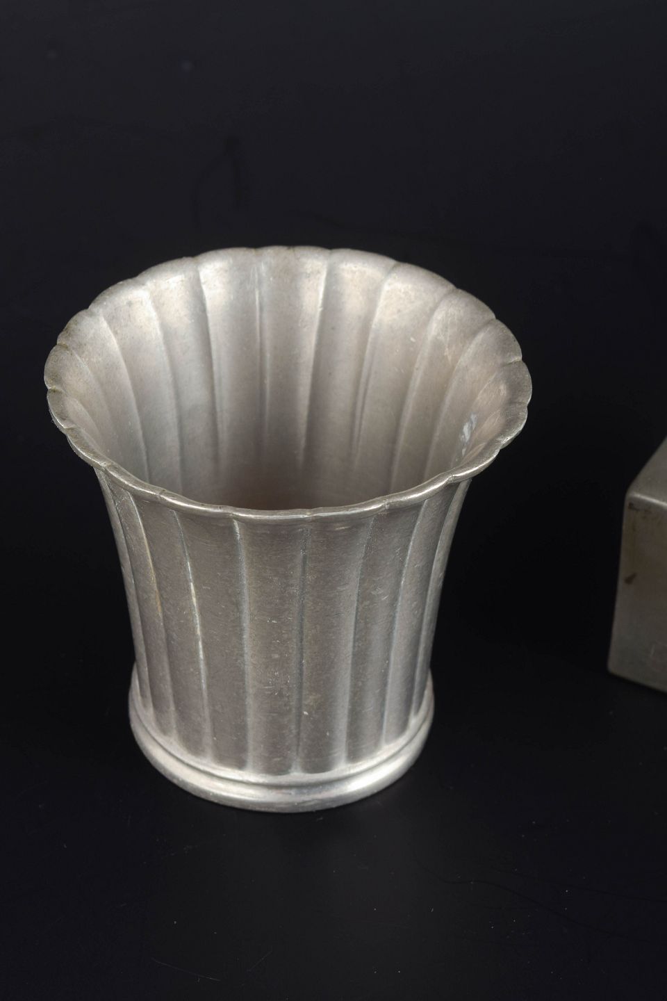 Vase model 2352 og tændstikæskeholder i tin, 1930’erne–40’erne.