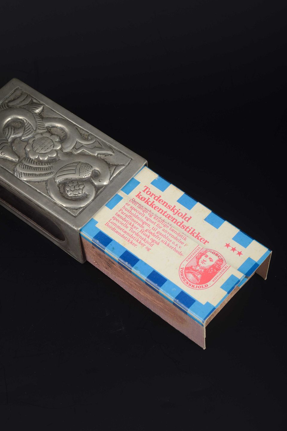 Tændstikæskeholder: H. 4 cm, L. 11 cm, D. 6 cm