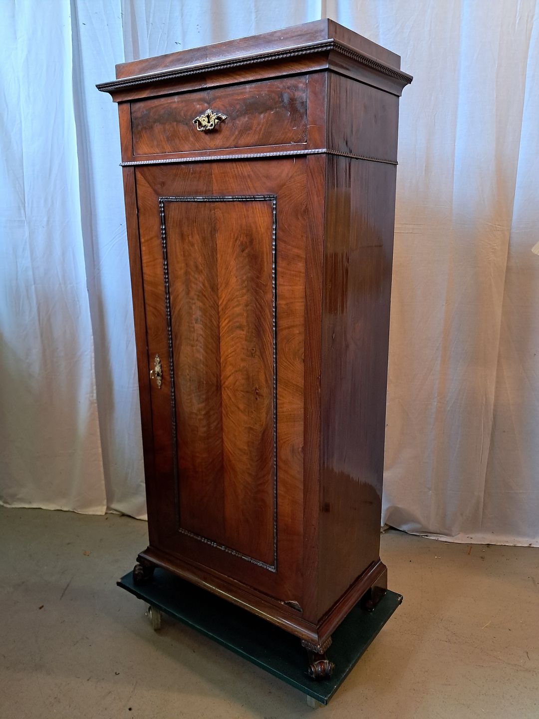 Skab i fineret nødetræ og mahogni, fra 1900erne.