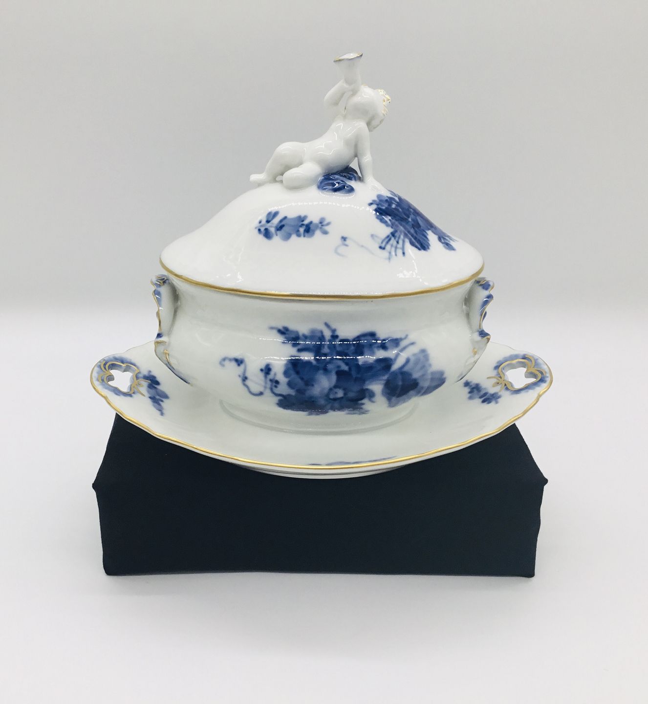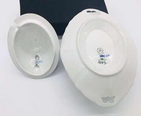 Text zugänglich auf Dänische: Royal Copenhagen, Blå Blomst svejfet med guld, sjælden sovsekande på