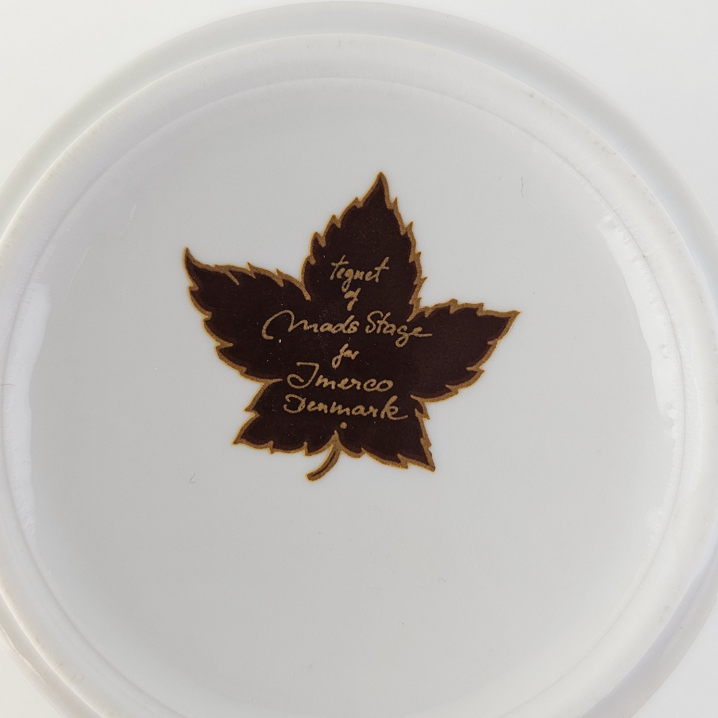 Text zugänglich auf Dänische: Årskrus i porcelæn fra Jagtstellet med fuglemotiver tegnet af Mads Stage for Imerco