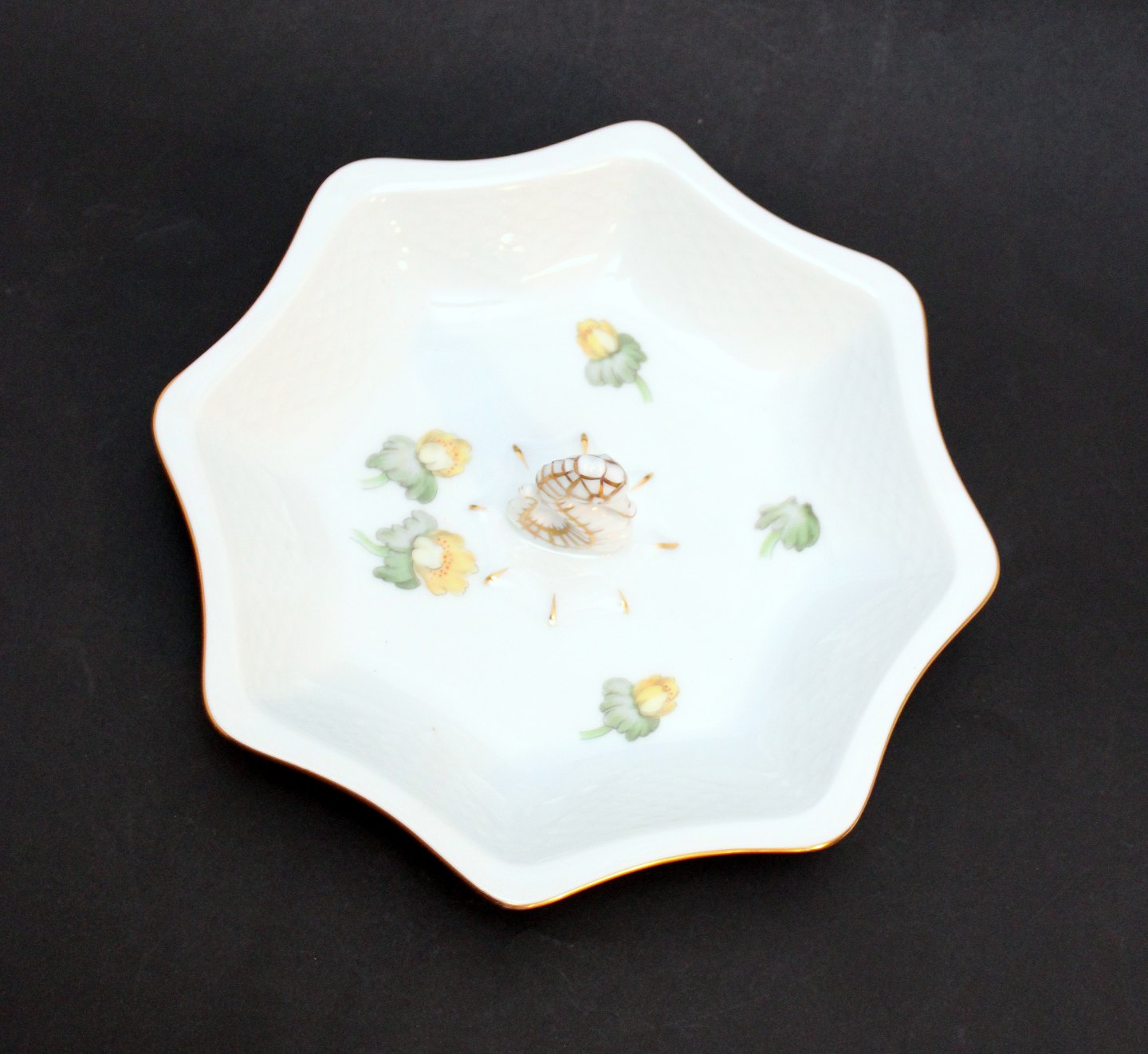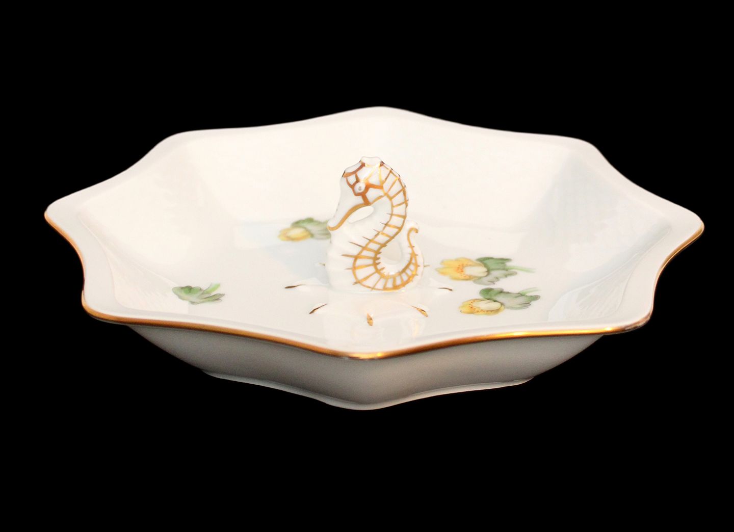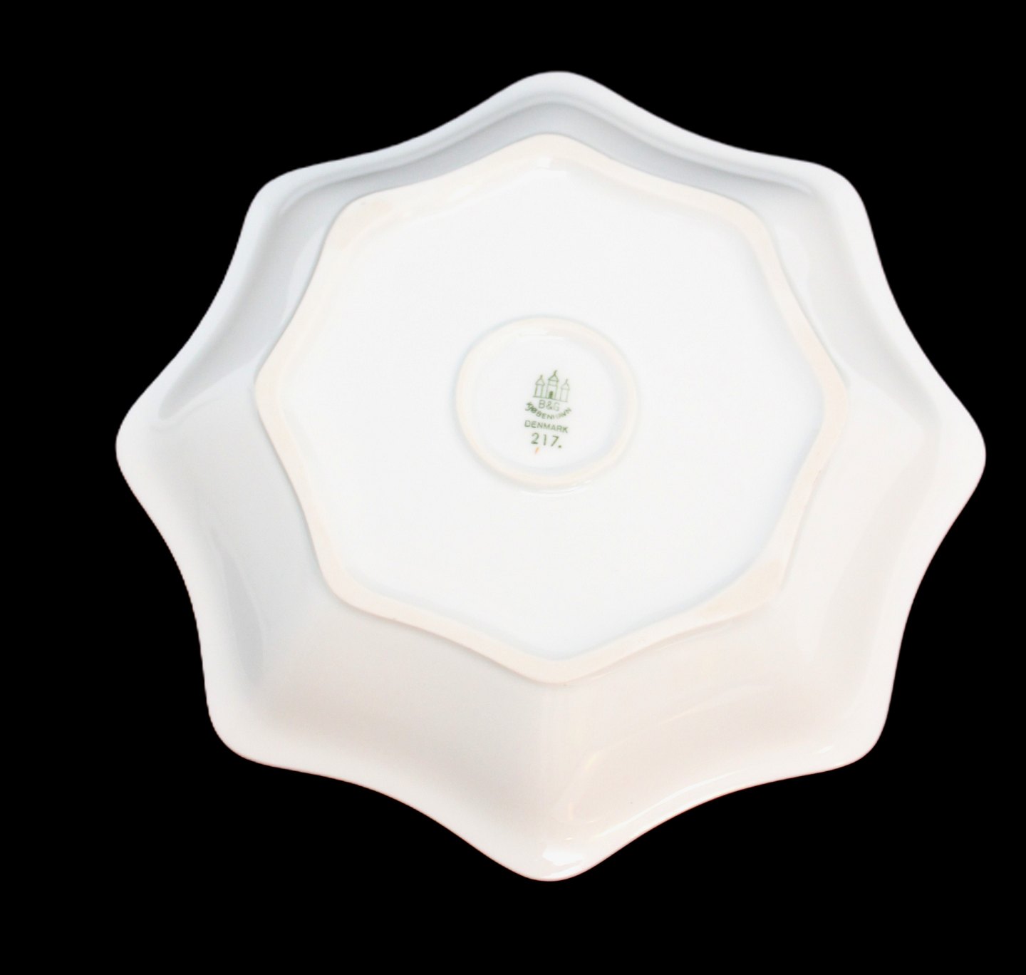 Text zugänglich auf Dänische: Bing & Grøndahl, Erantis, Kantet småkage skål med Søhest i midten. Nr. 217. 20 x 20 cm. Højde 3 cm. I. sortering. Flot stand. Pris: 650 kr. stk. Lager: 1
