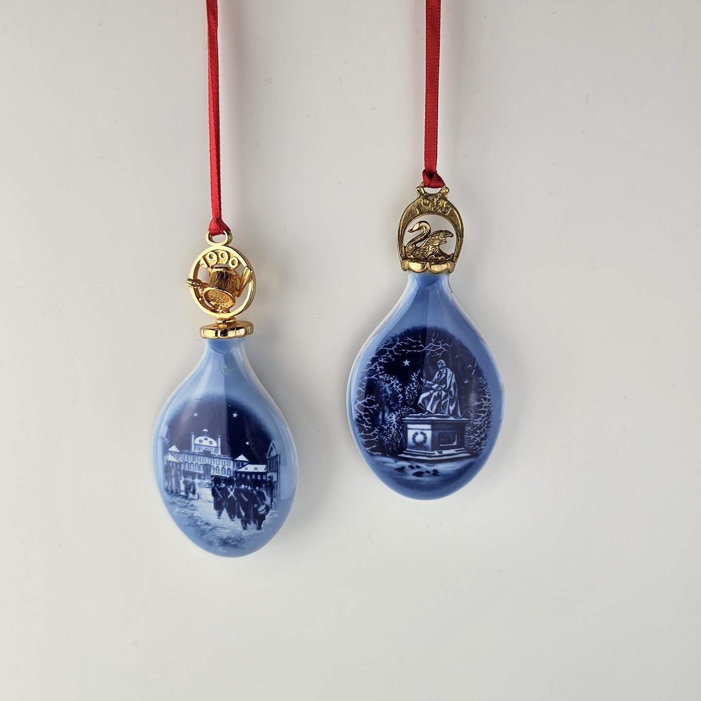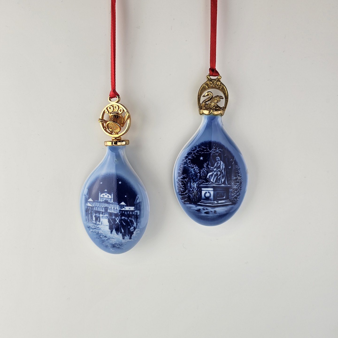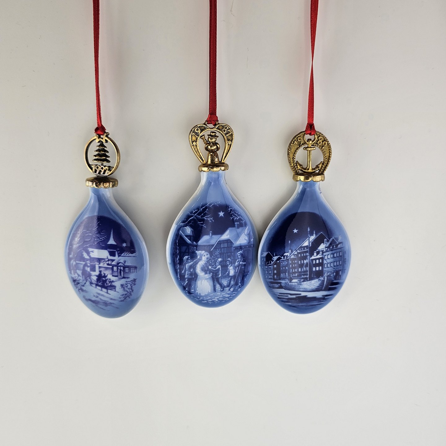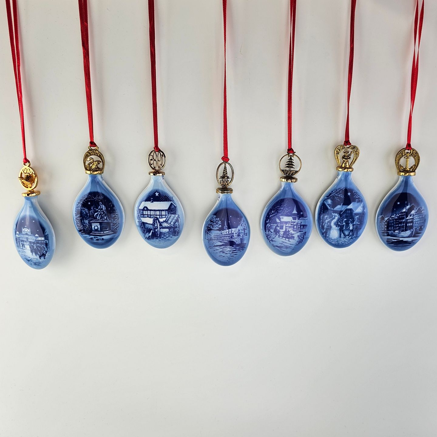 Text zugänglich auf Dänische: Juledråber i porcelæn med blåmalet motiv