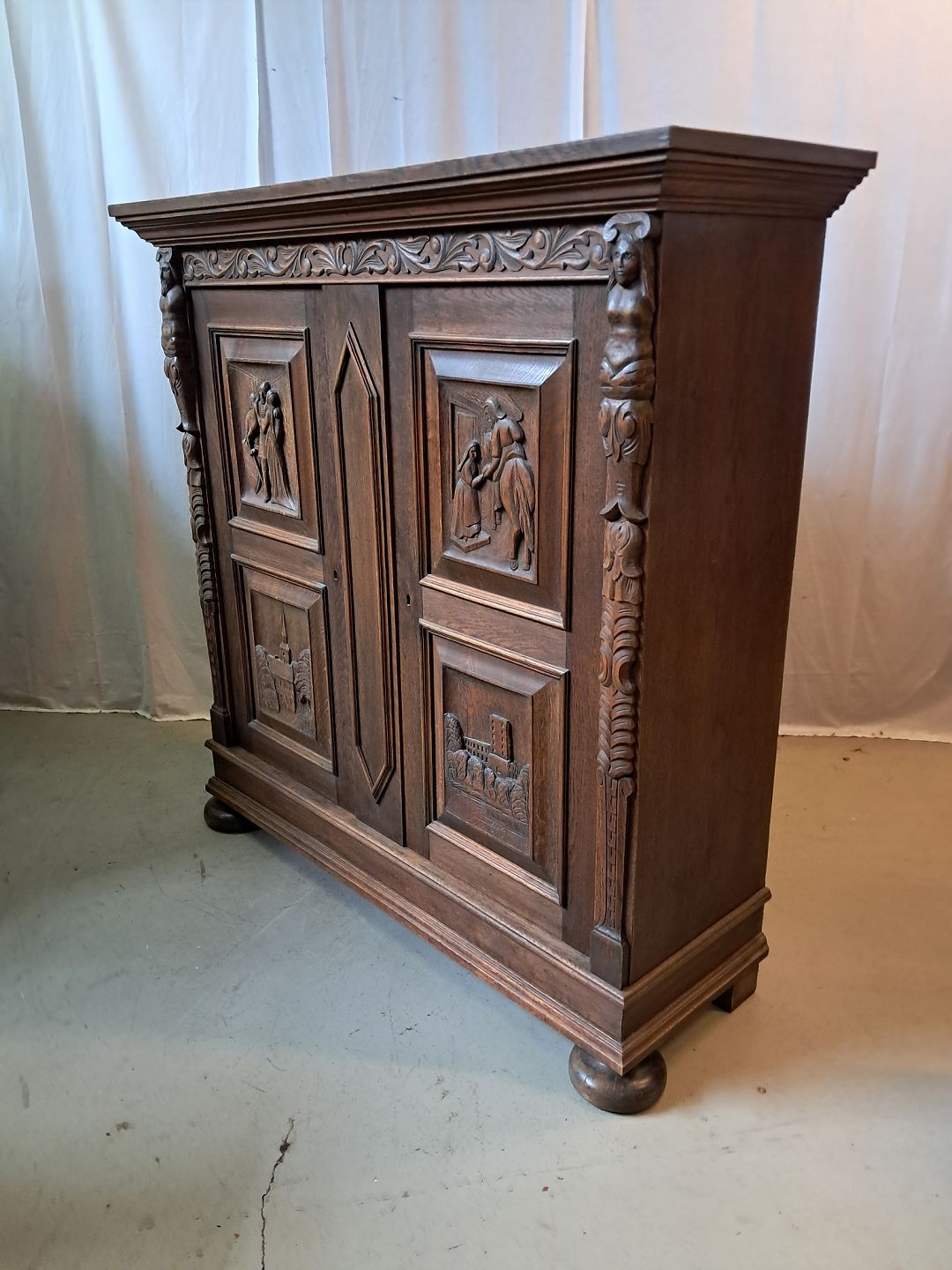 Dækketøjsskab i fineret egetræ, fra 1930erne.