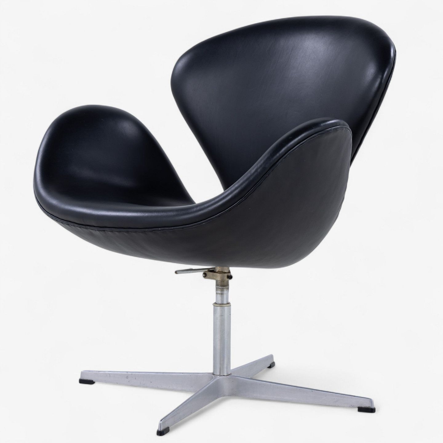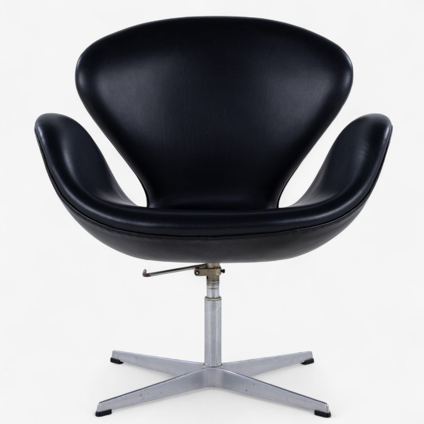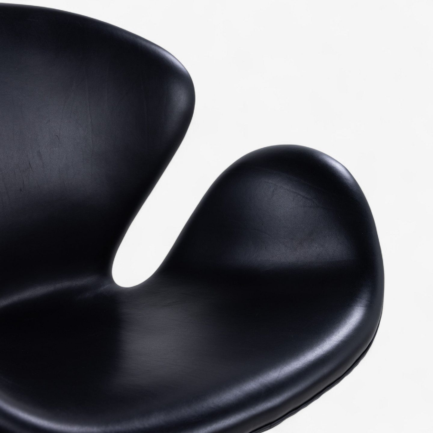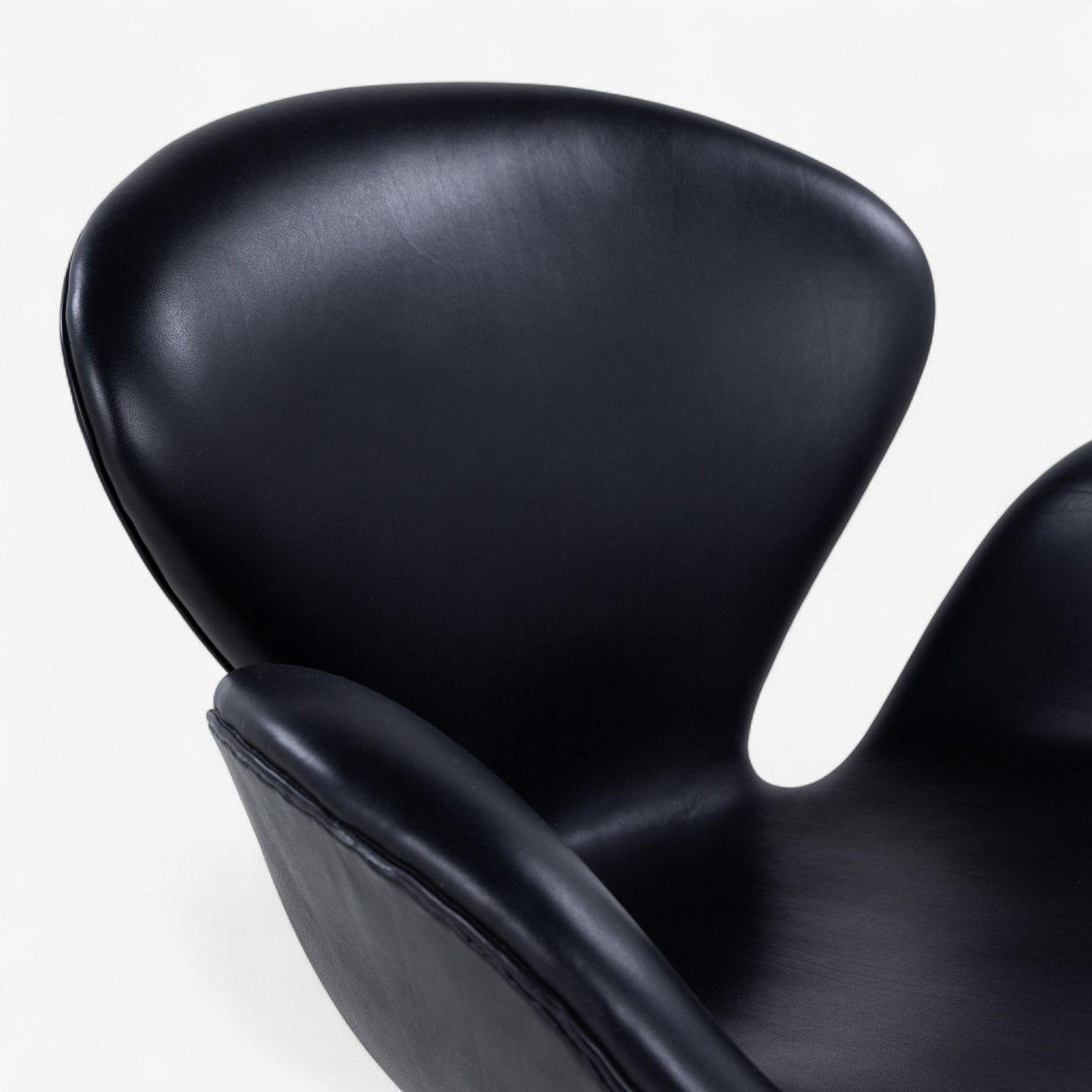 AJ 3320 - 'Svanen'-lænestol i sort læder med ny fod.