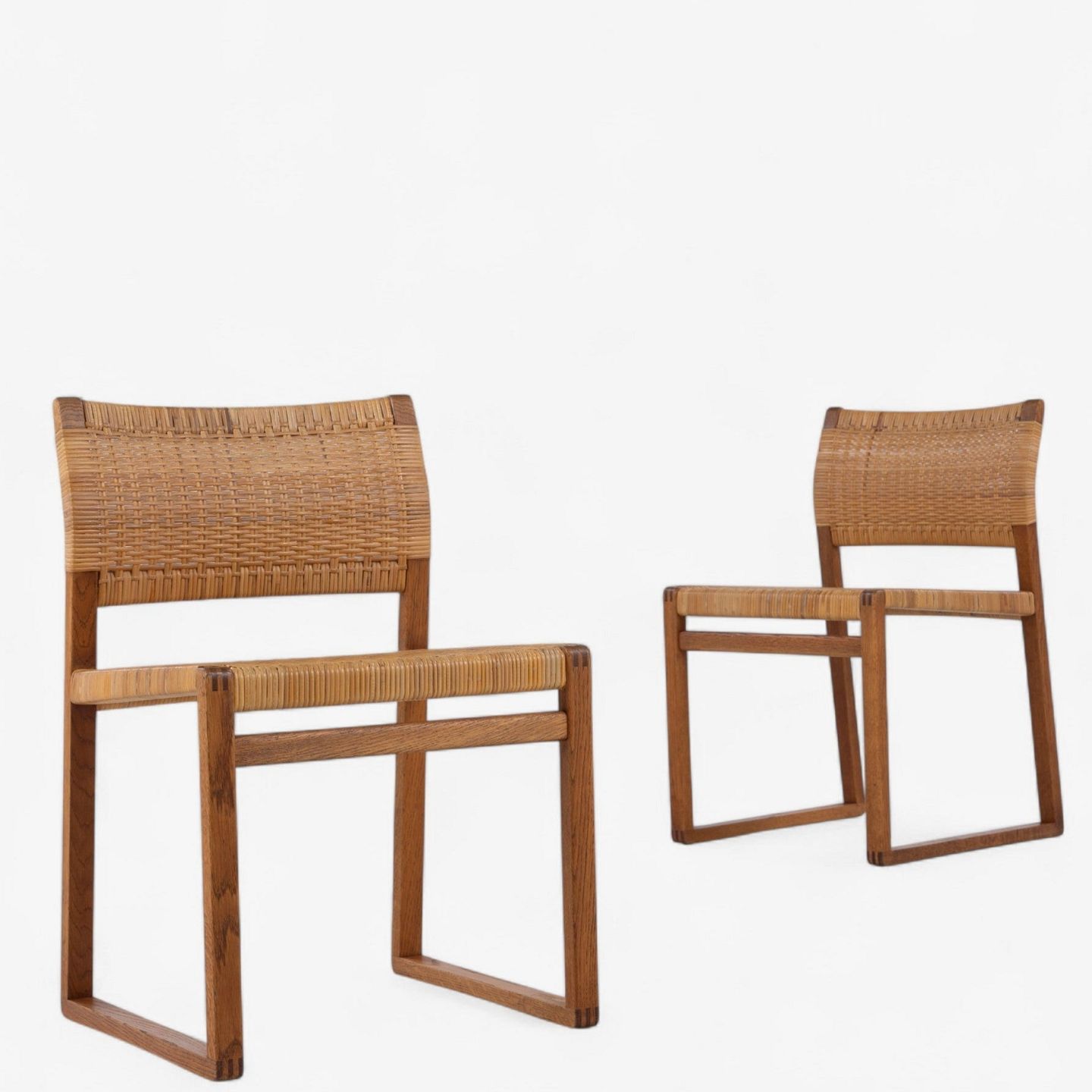 BM 61 - Sæt á 4 spisestole i eg og patineret sjeneflet.