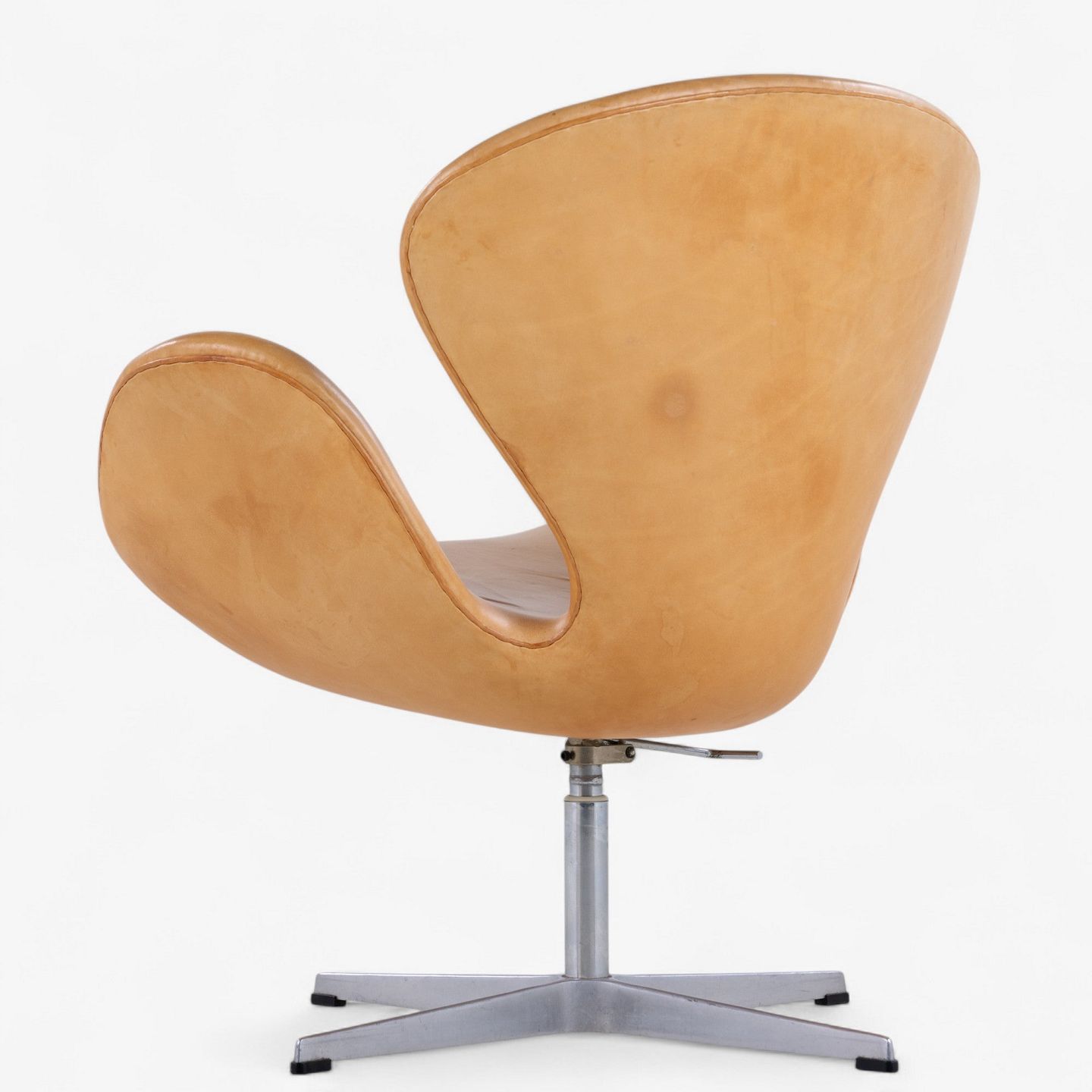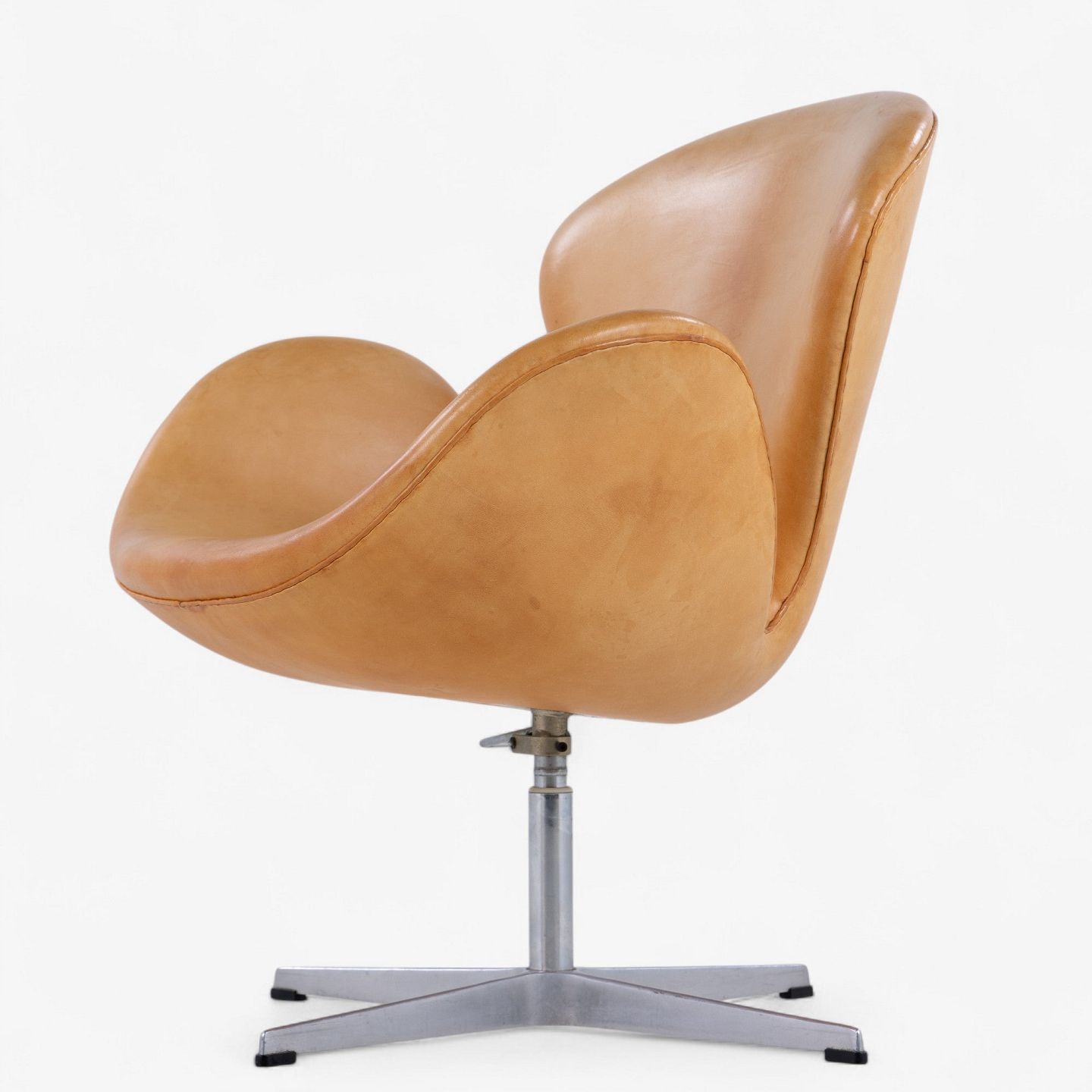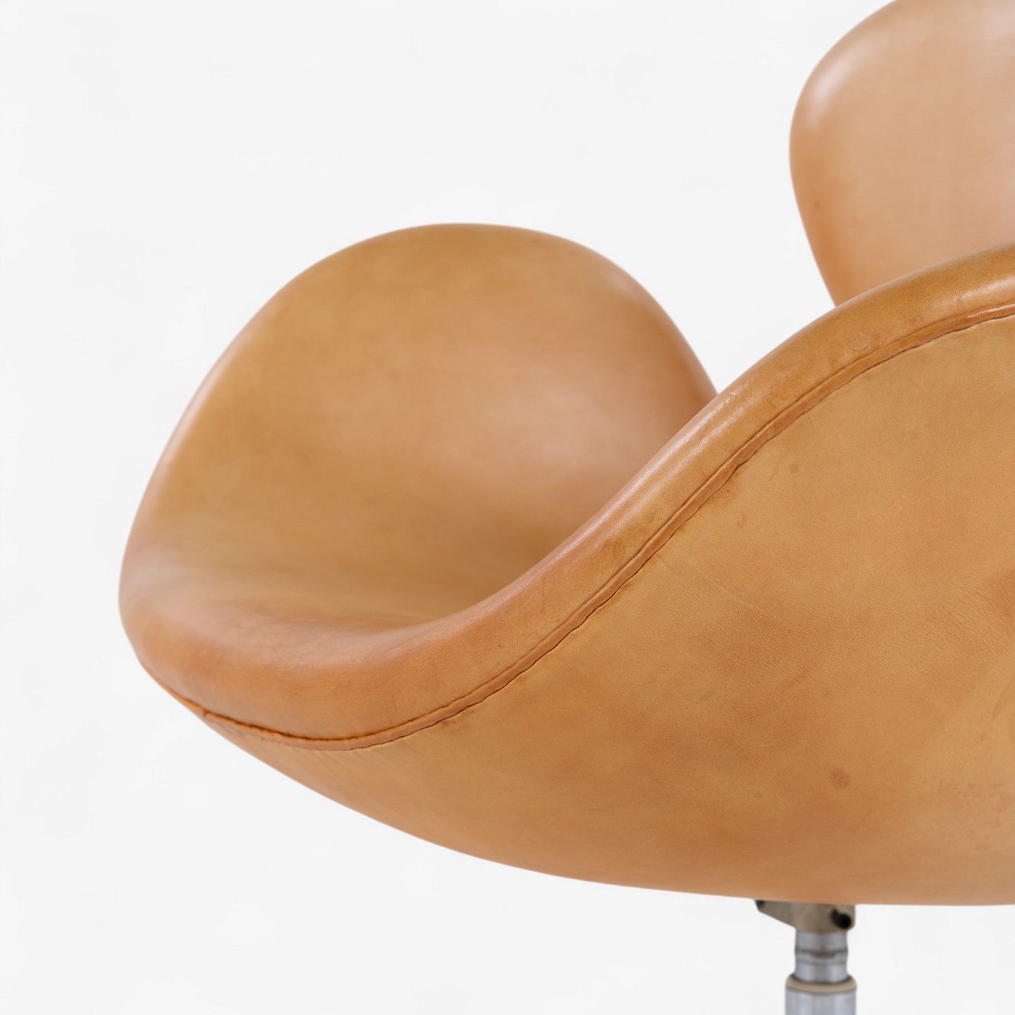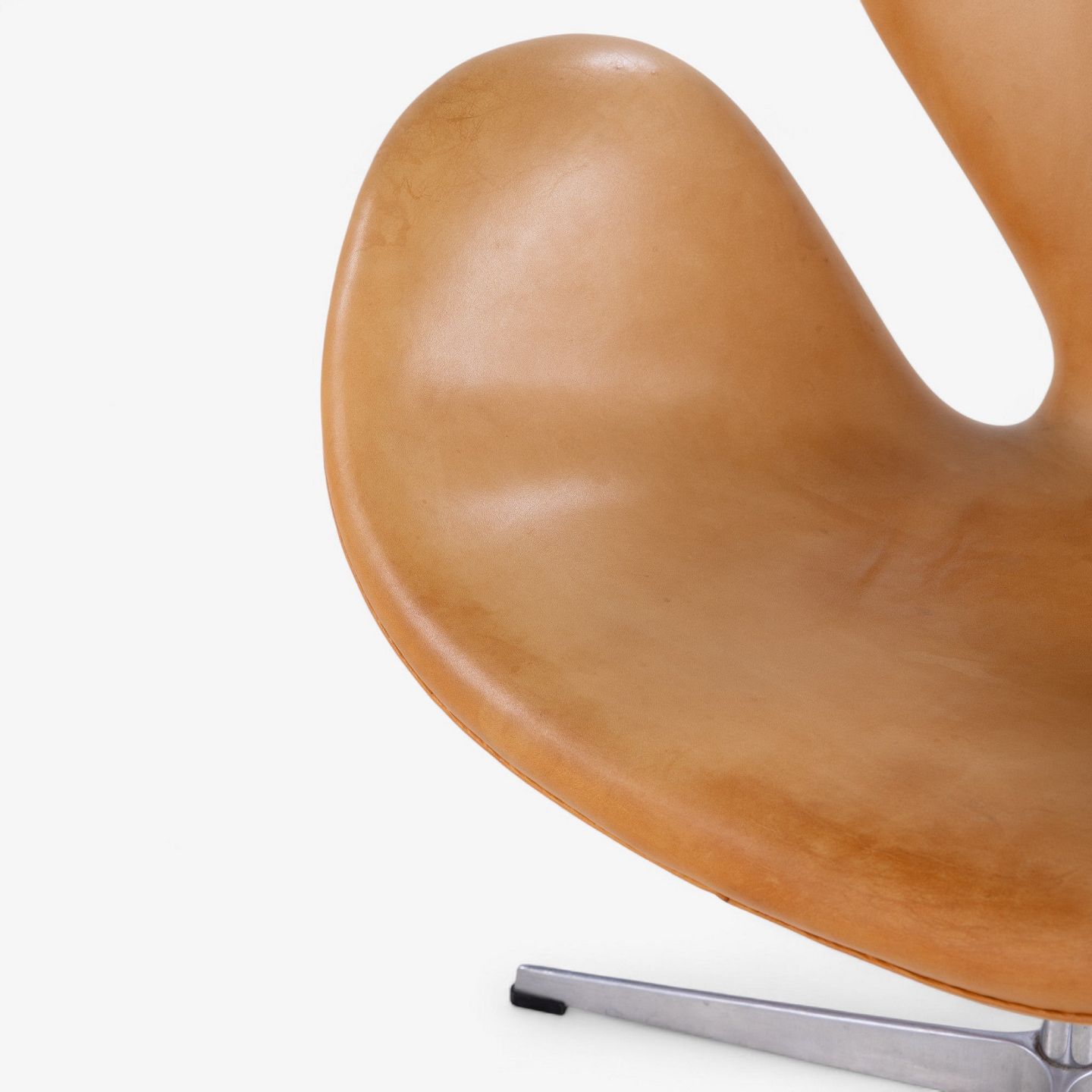 AJ 3320 - 'Svanen'-lænestol i patineret naturlæder på ny fod. Stemplet fra producenten.