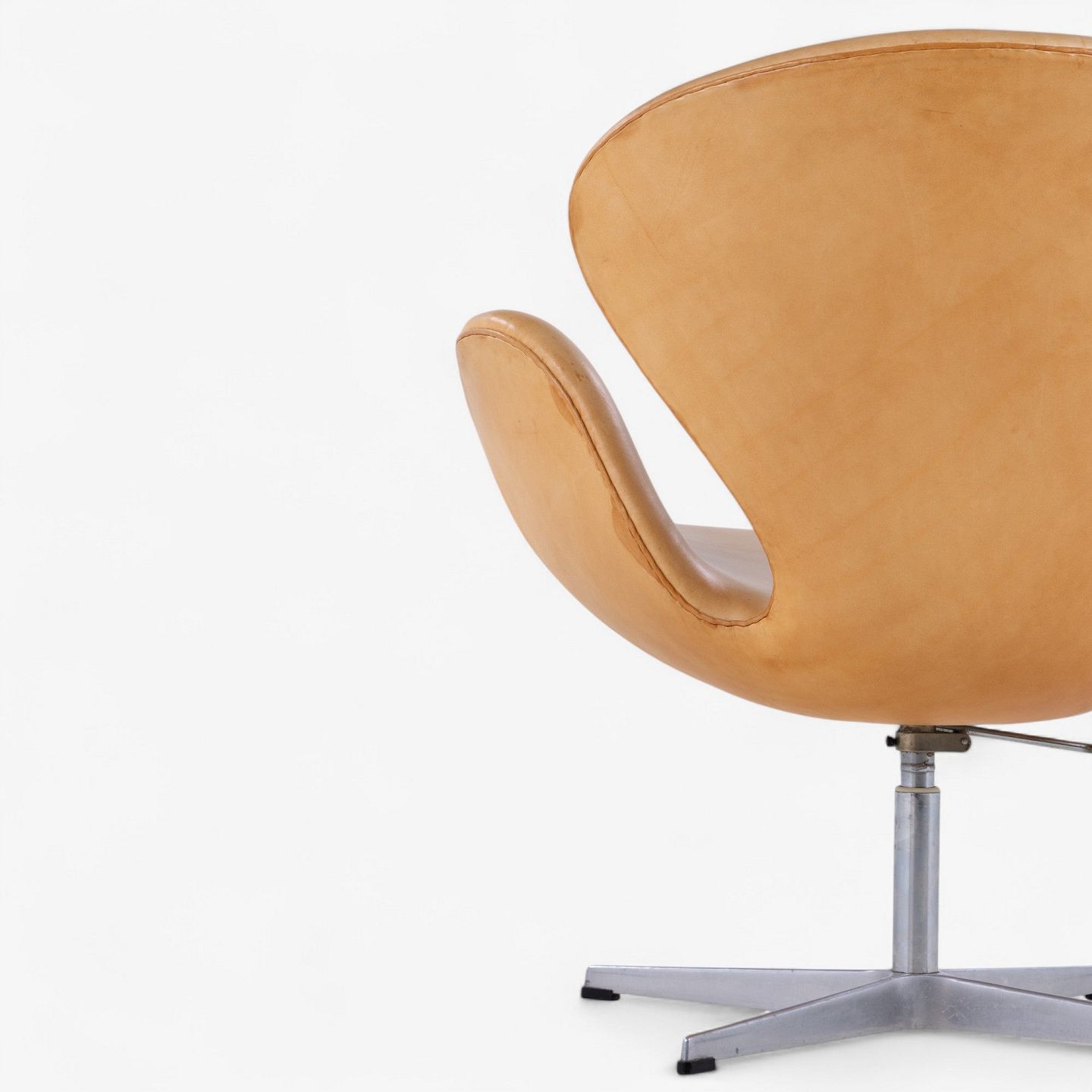 AJ 3320 - 'Svanen'-lænestol i patineret naturlæder på ny fod. Stemplet fra producenten.