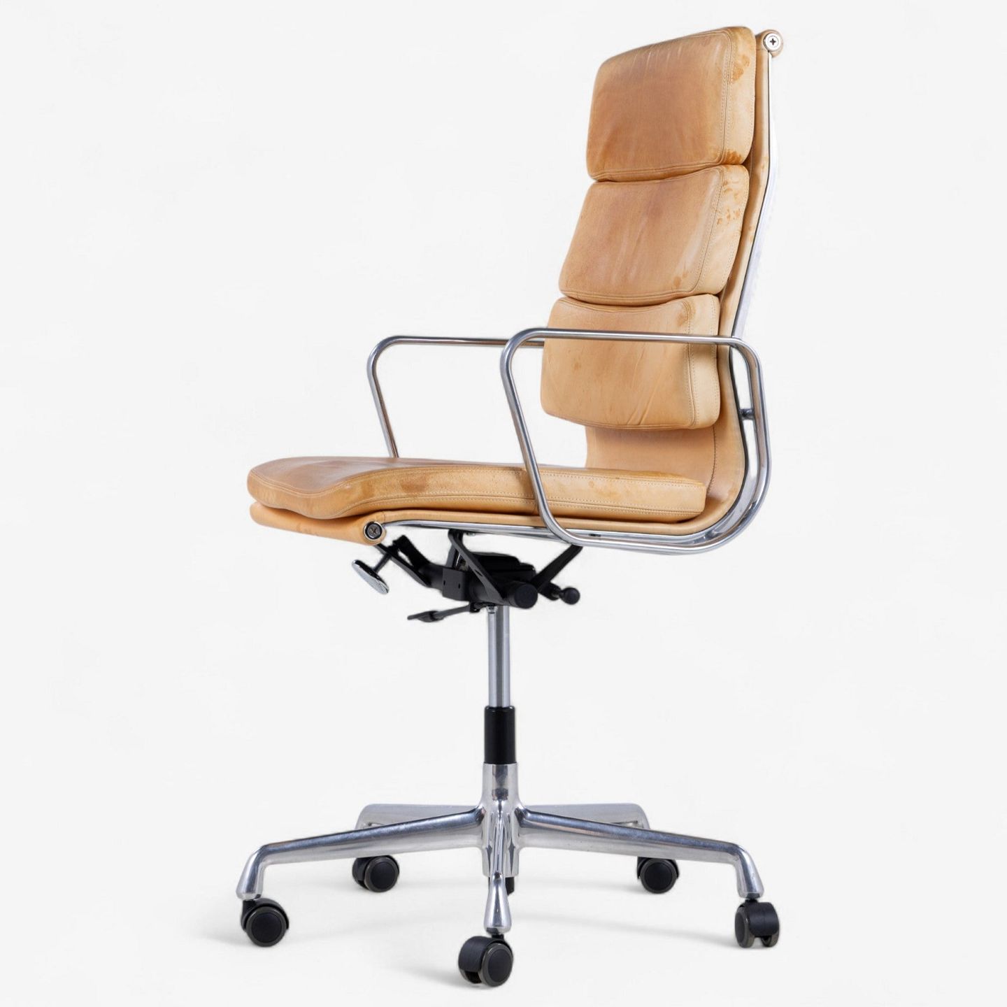 EA 219 - Højrygget kontorstol i patineret naturlæder på stel af stål. Mærket fra producent.