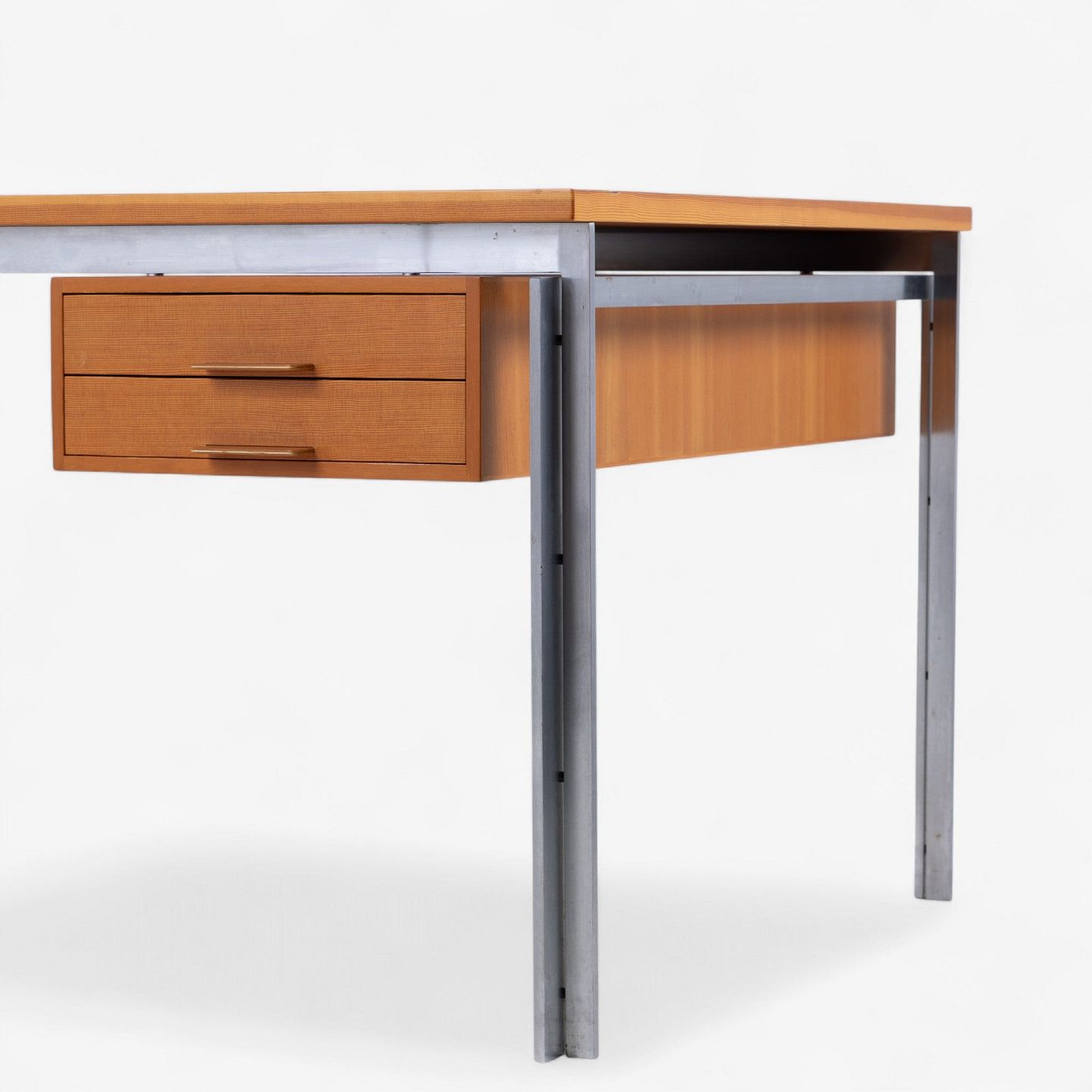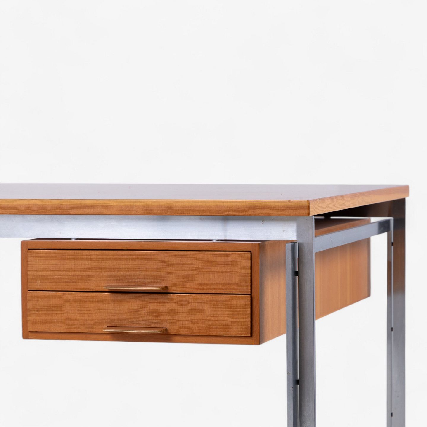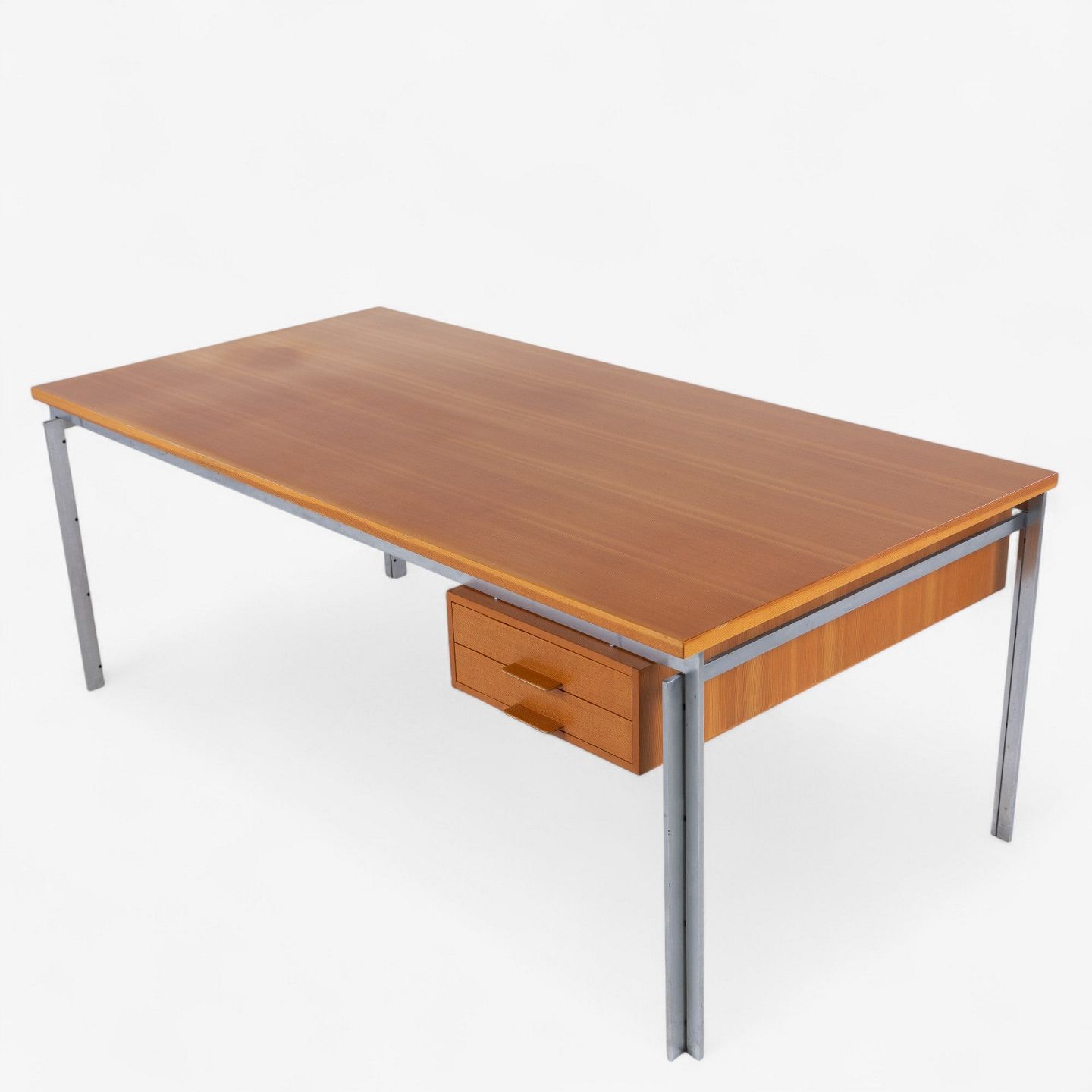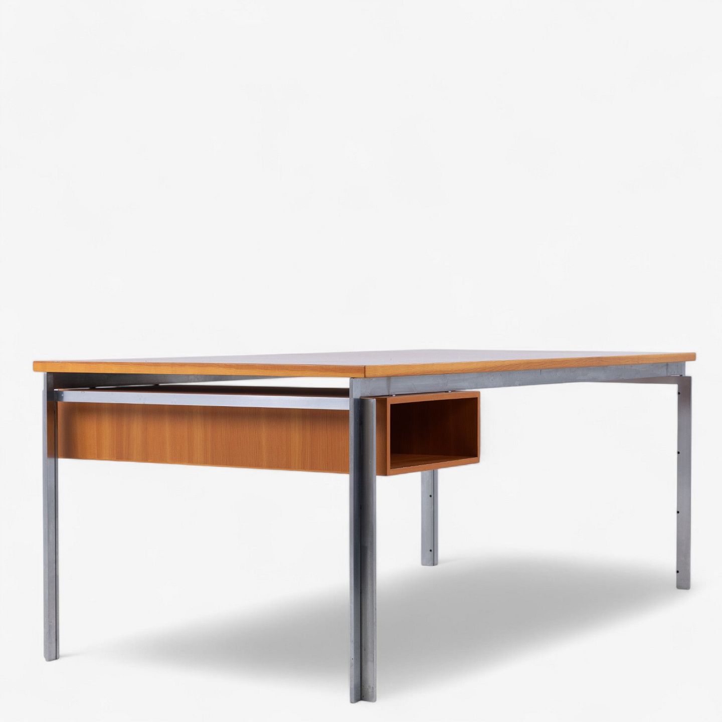 PK 55 - Arbejdsbord/skrivebord med plade og skuffemodul i oregon pine og stel i stål. Fra 1985. Mærket fra producent.