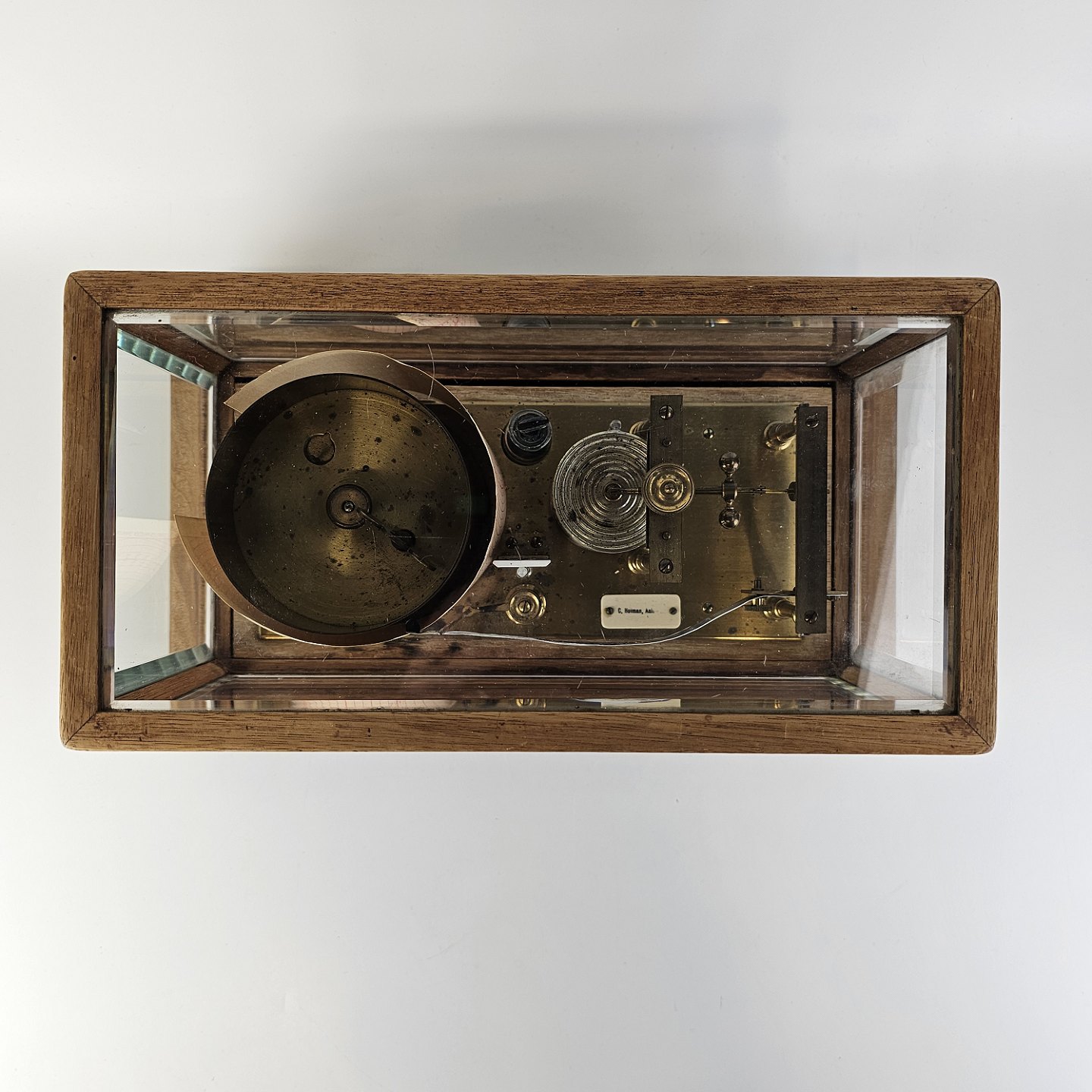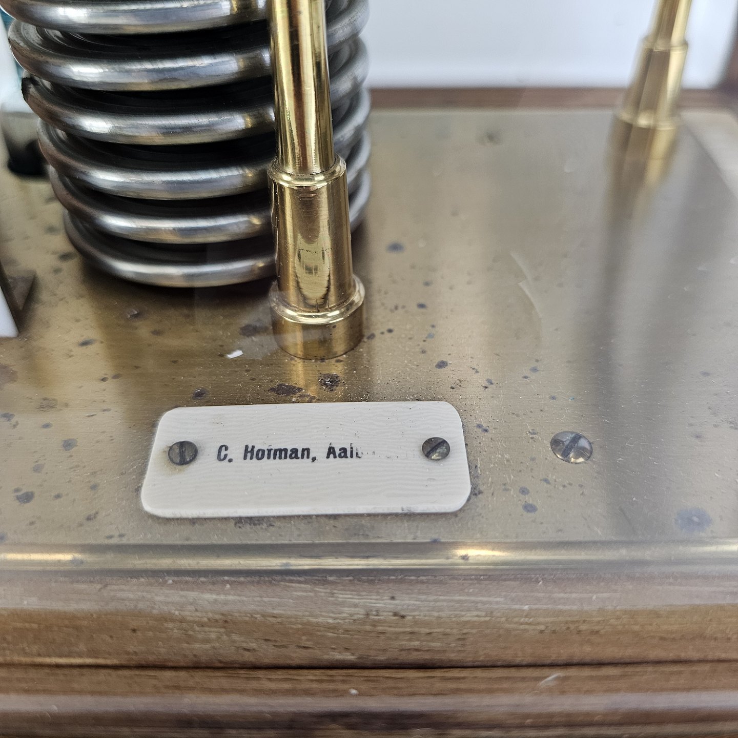Barograf i kasse af træ og glas, med en skuffe i bunden