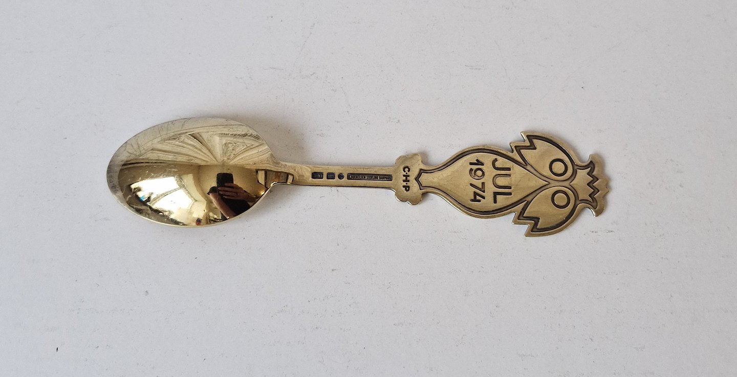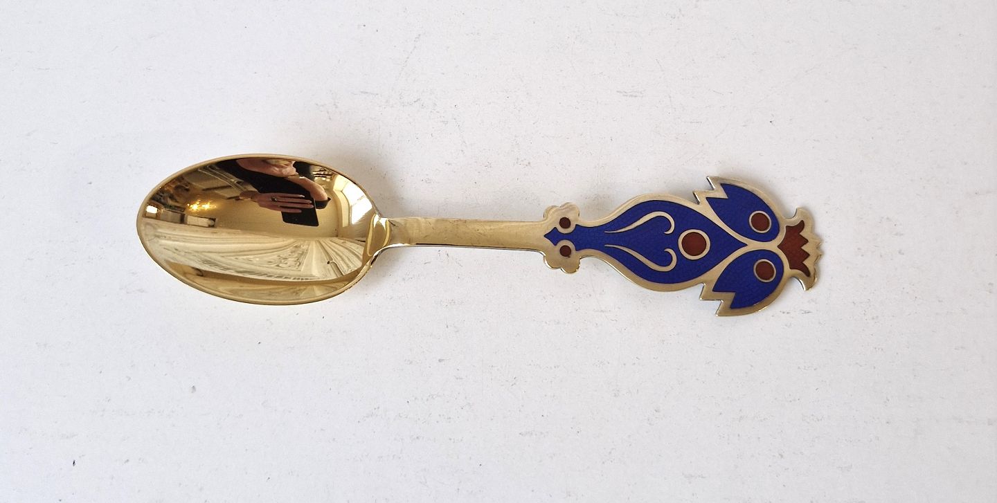 Text zugänglich auf Dänische: A.Michelsen juleske i forgyldt sterlingsølv med emalje 1974