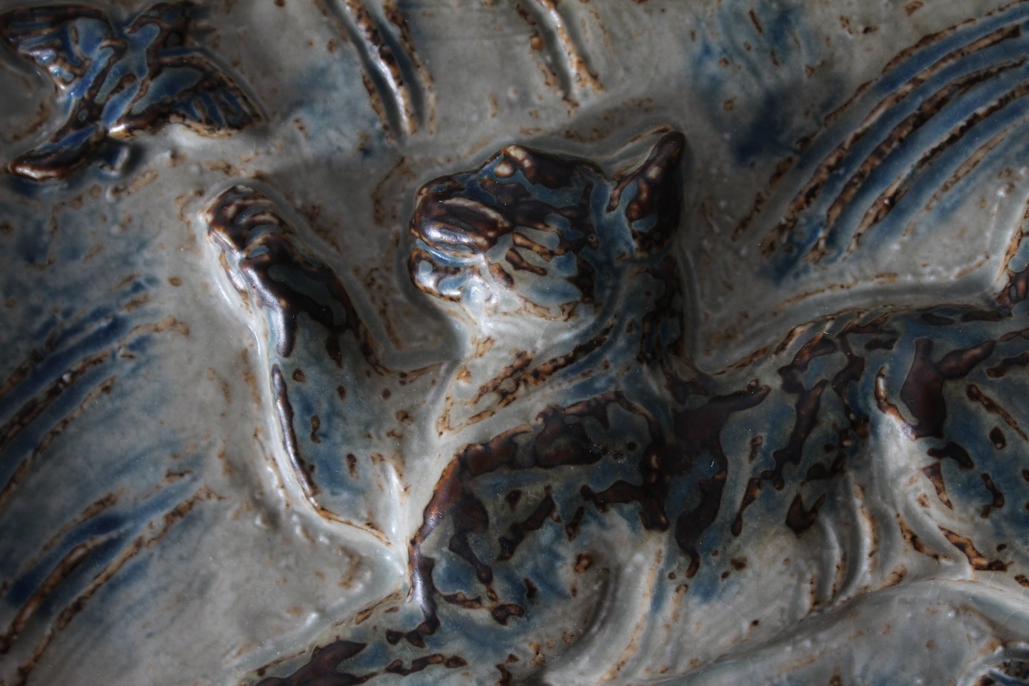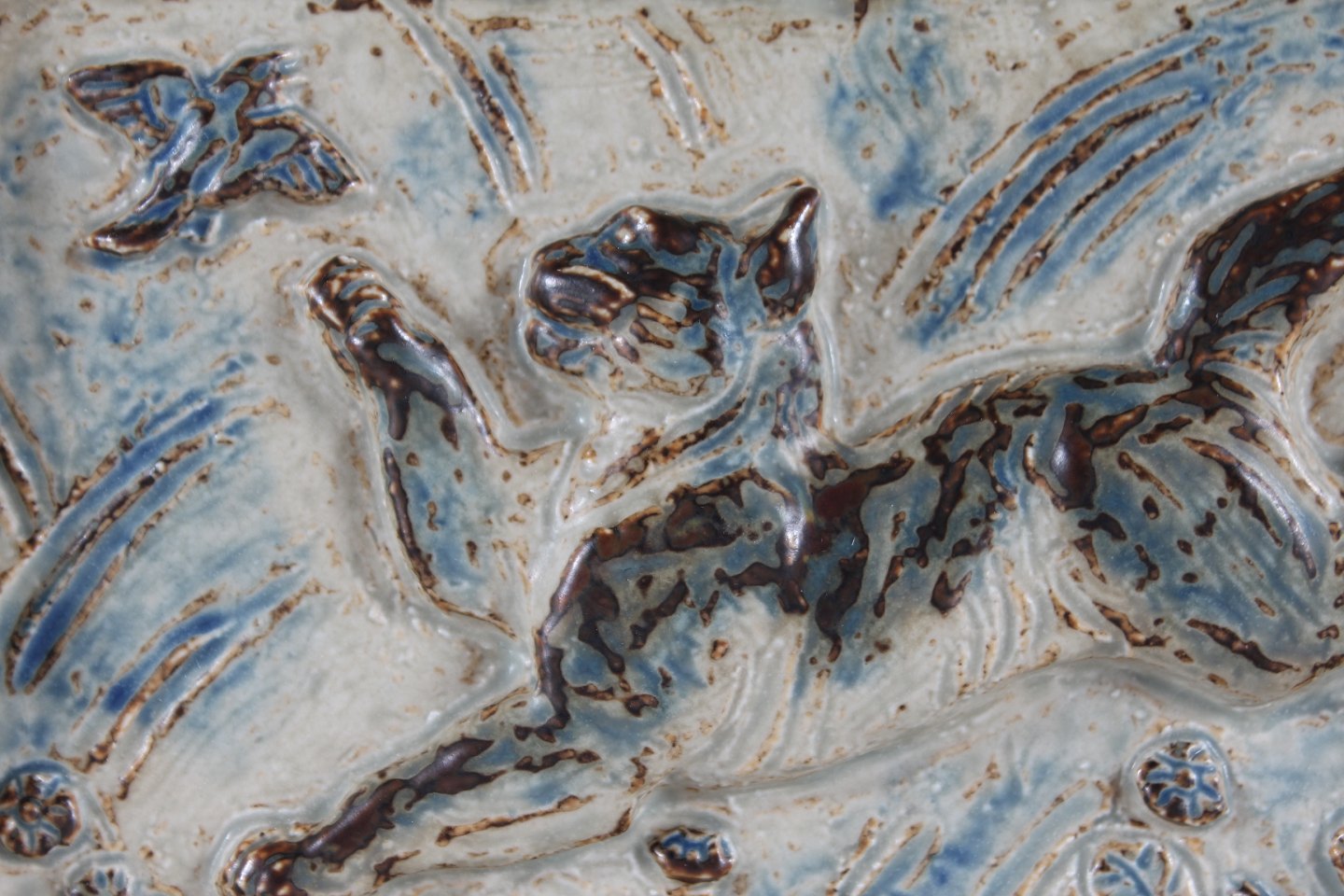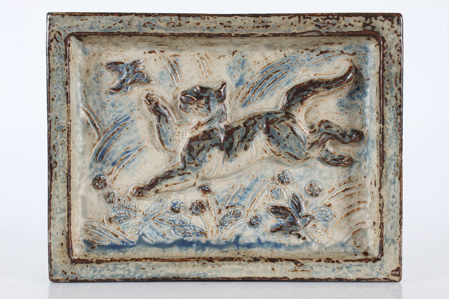 af stentøj med springende kat og fugl