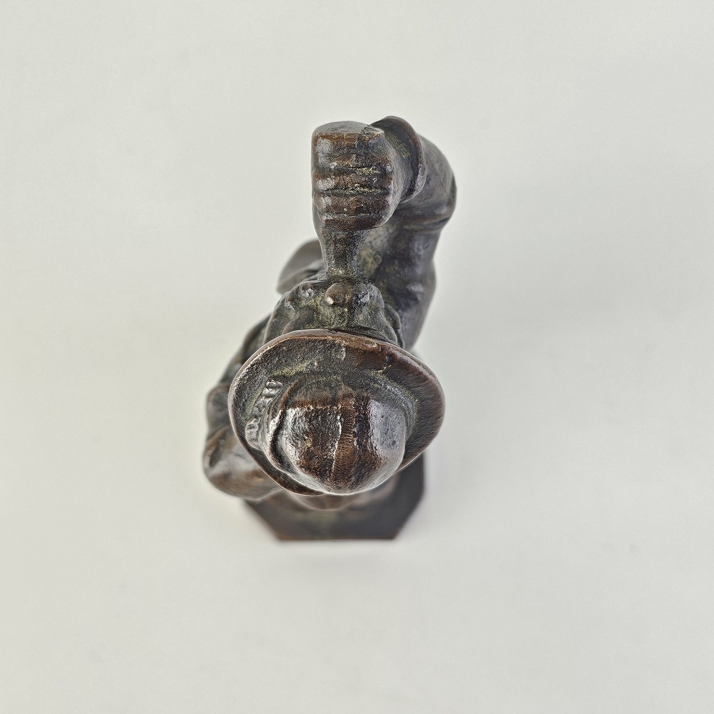 Statuette i bronze med motiv af en mand, som drikker af en flaske