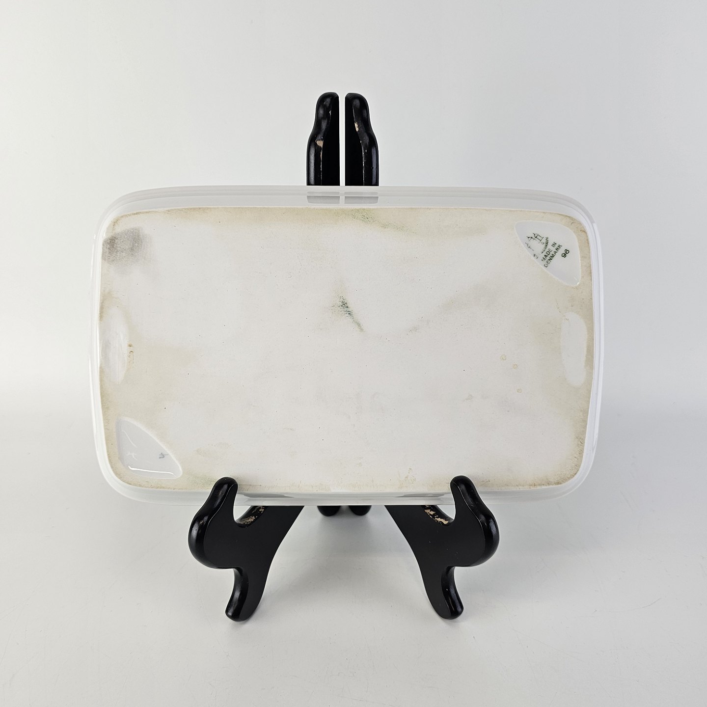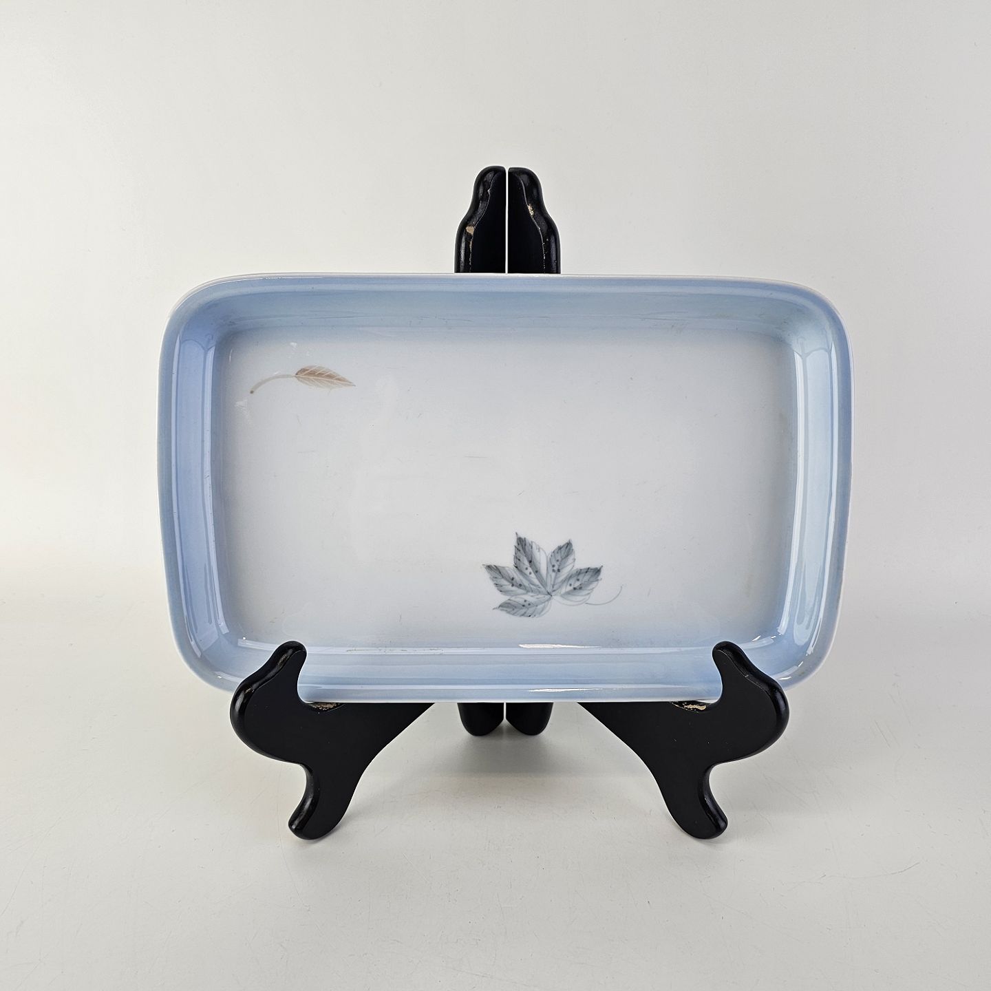 Løvfald er hvidt porcelæn som toner ud i blå, dekoreret med faldende blade i sort og rødt