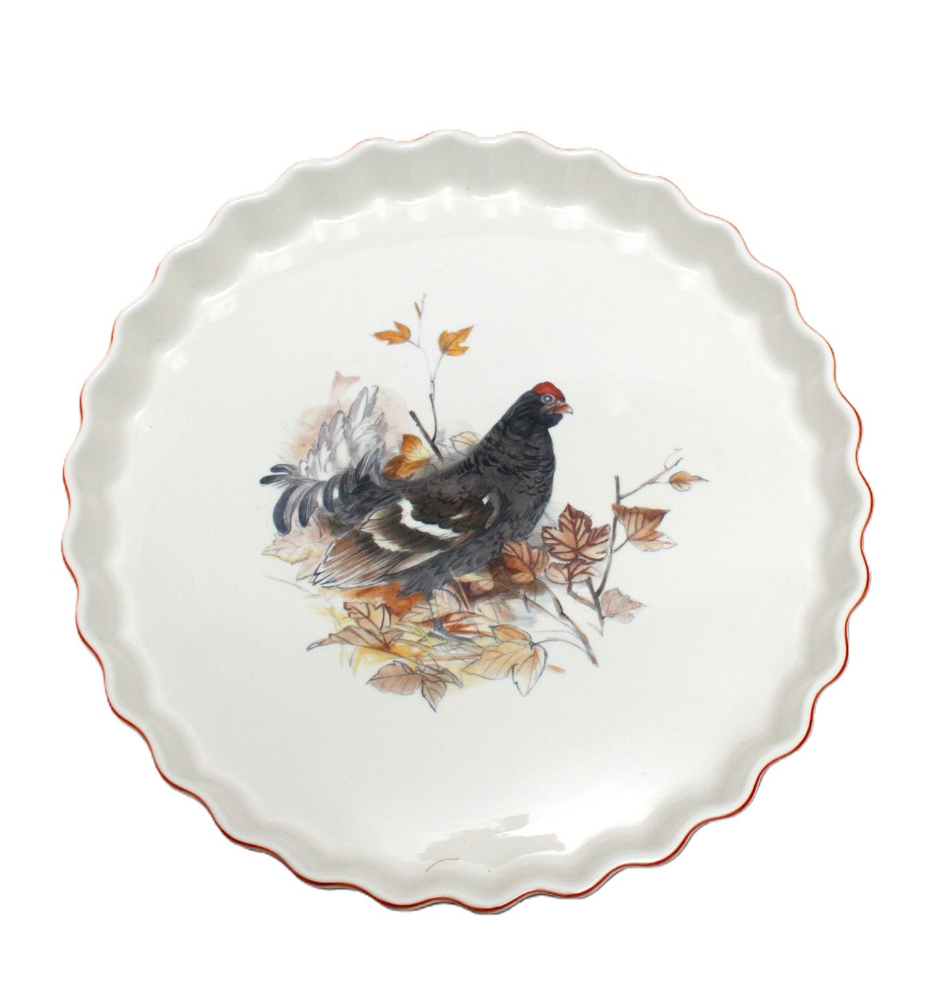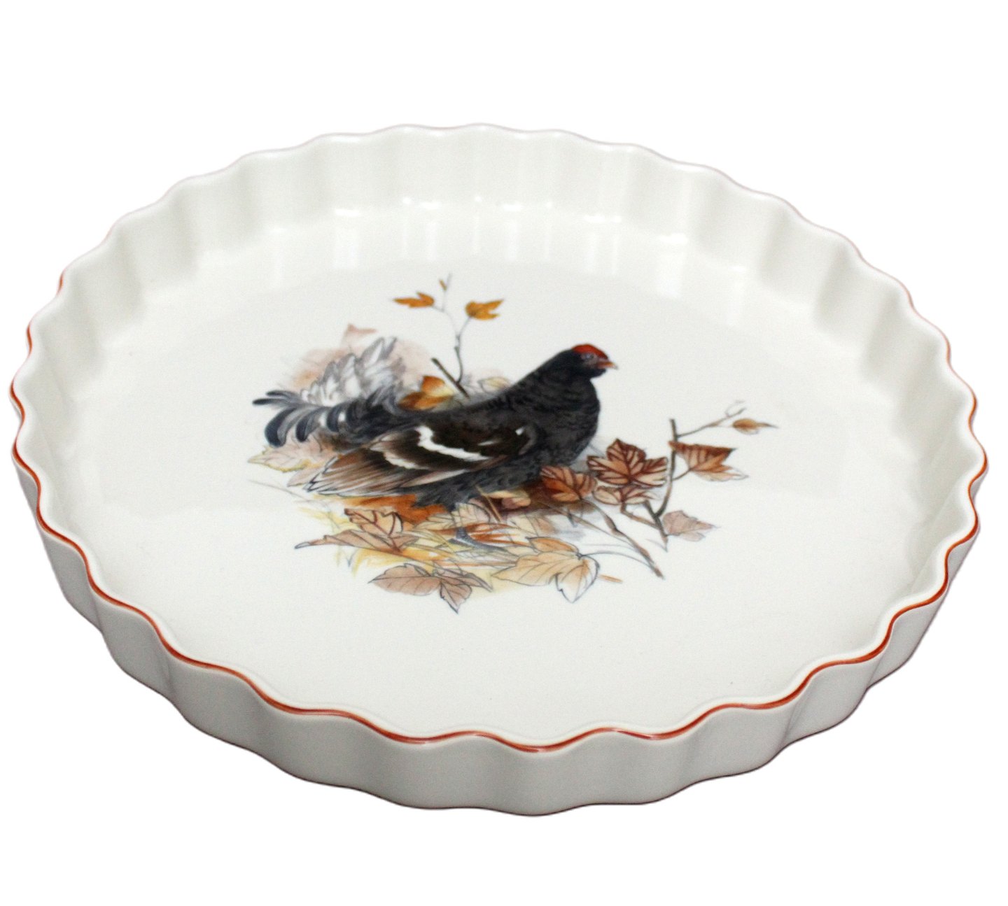 Villeroy & Boch, Jagtstellet designet af Mads Stage for Imerco. Stort Tærtefad med Urfugl. Fadet har en mere cremet farve end resten af Mads Stage stellet og er produceret af Villeroy & Boch. Fadet er ovnfast, tåler microovn og opvaskemaskine. Diameter 30 cm. Højde 4 cm. Flot ubrugt stand. Pris: 750 kr. Lager: 1
