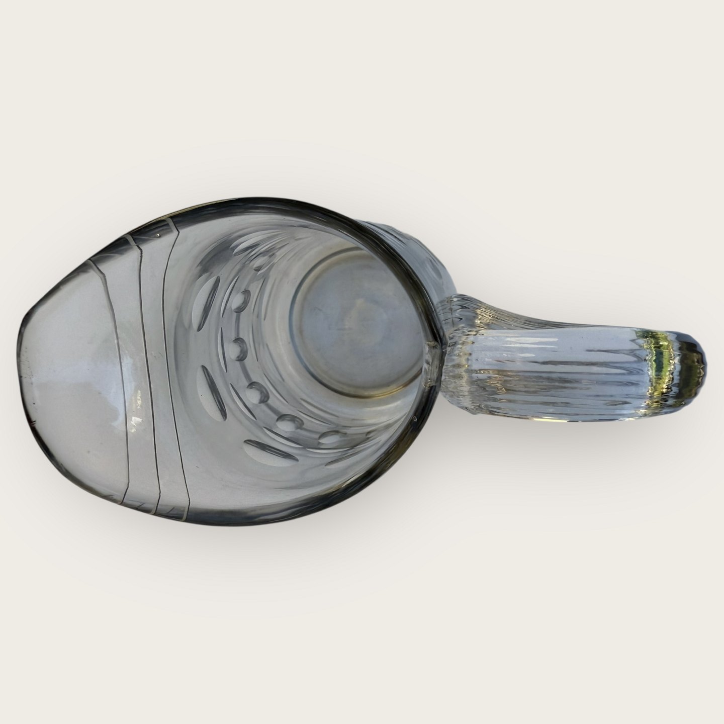 Schneckenhenkelkrug mit Einschnitten, 23cm hoch, 16x12cm breit, *Kleiner Chip am Henkel an der Stelle, wo er am Krug befestigt ist (siehe Foto), sonst sehr guter Zustand*
