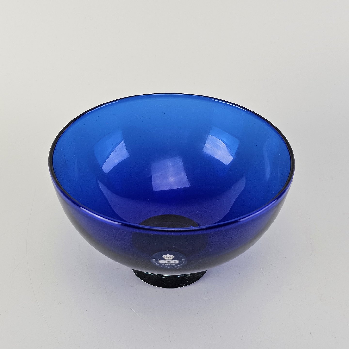 Harlekin skål i gennemsigtigt blåt glas med klart glas i bunden