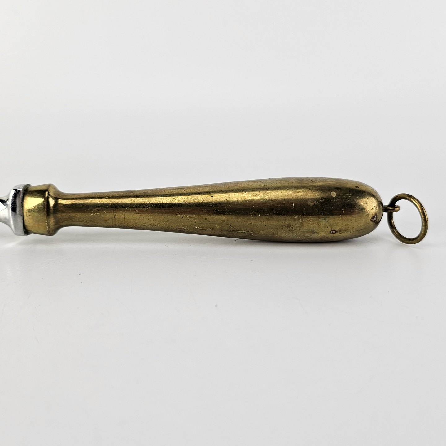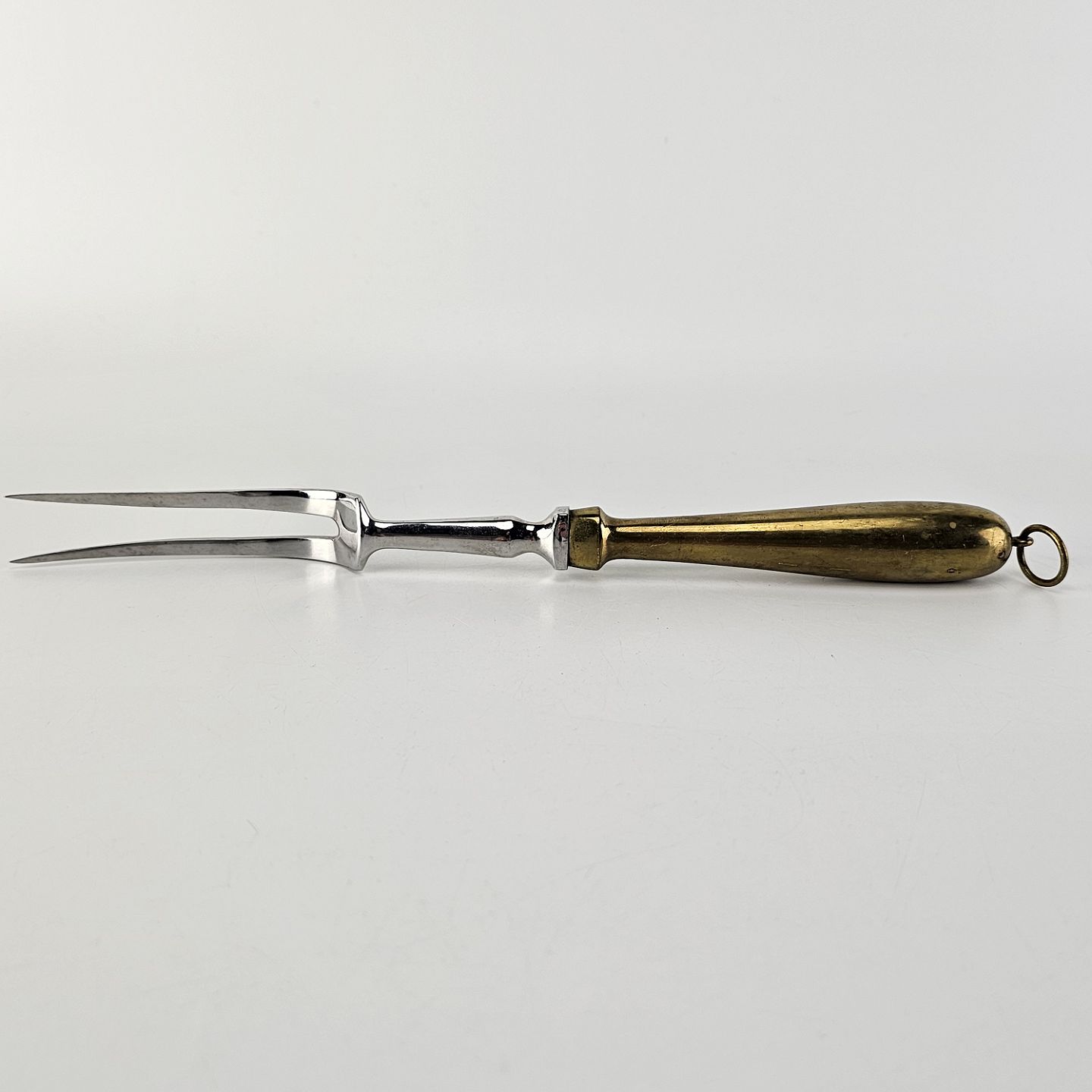 Stegegaffel i rustfrit stål med skaft af messing