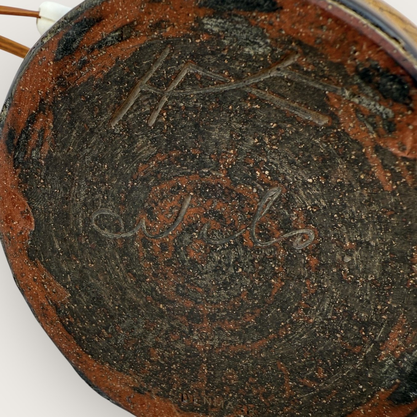 Kähler Keramik, Glasierte Tischlampe gelb/grün, 27,5cm hoch (inkl. Fassung), Signiert HAK Nils *Guter Zustand*