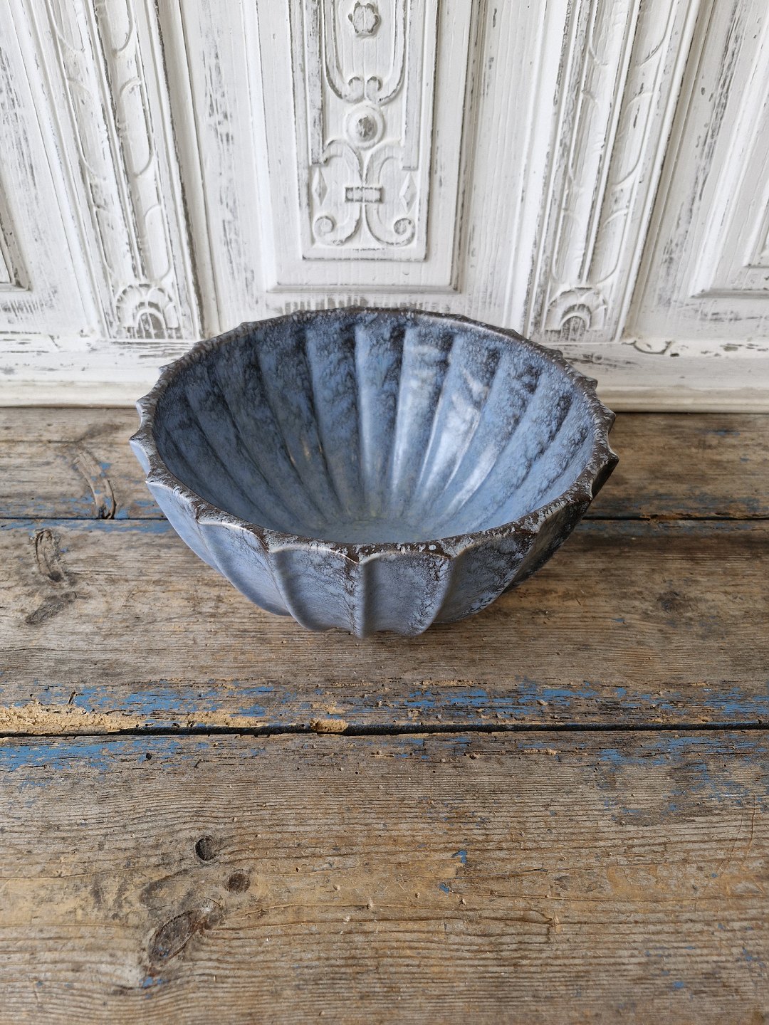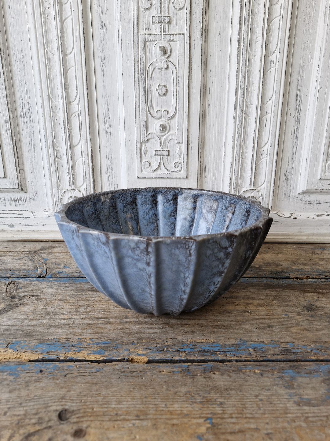 Text zugänglich auf Dänische: Michael Andersen stor riflet skål med smuk blå glasur