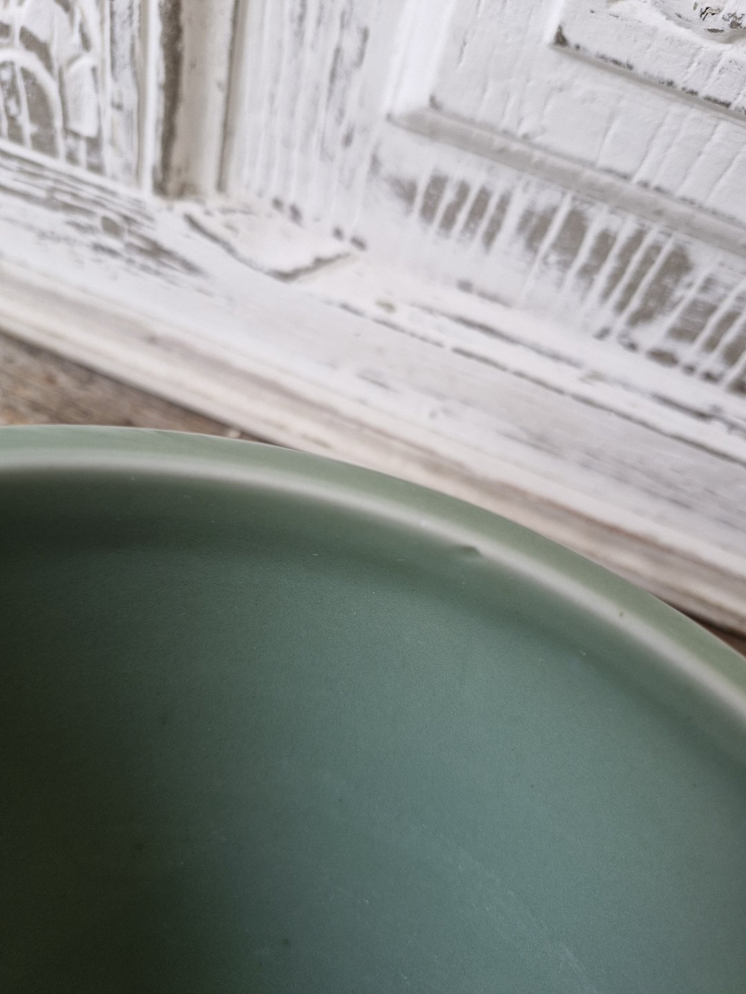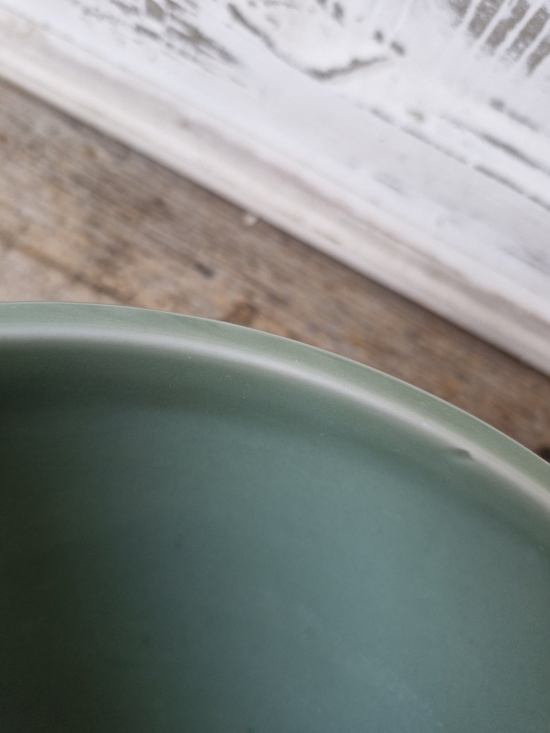 Text zugänglich auf Dänische: Bode Willumsen for Royal Copenhagen stor unika skål i smuk grøn glasur fra 1949