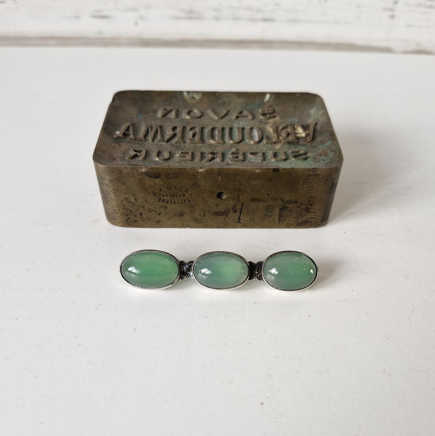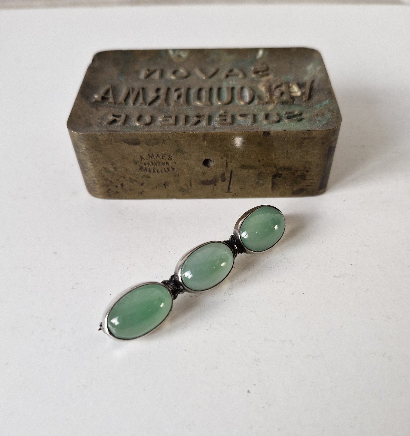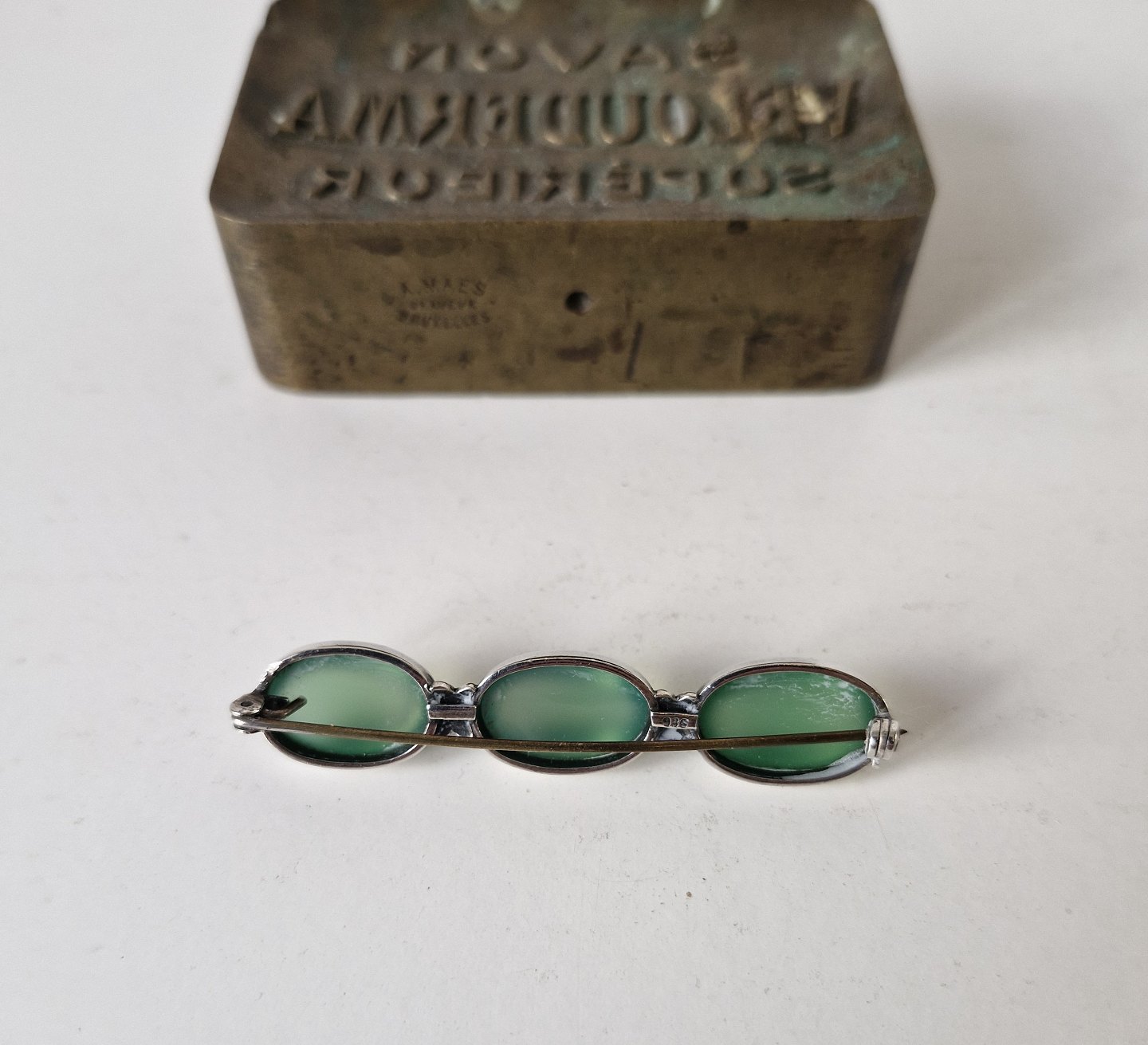 Sølv broche prydet med tre cabochon slebne agater