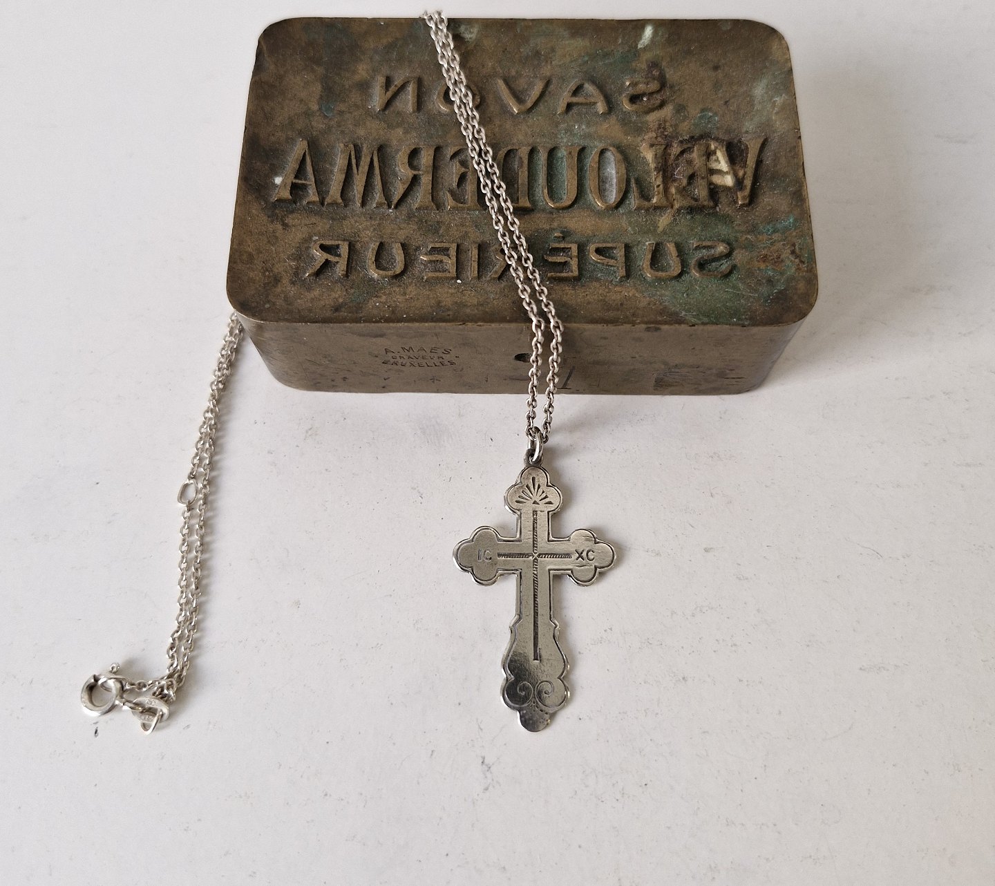 Text zugänglich auf Dänische: Smukt gammelt sølv kors i sølvkæde