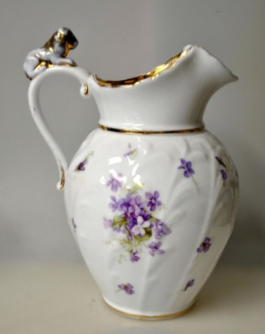 Löwe schokoladenkanne aus Porzellan, CT Altwasser, 19. Jahrhundert. Deutschland. Blumendekor in Transfertechnik. Gestempelt. Mit Vergoldung. Ohne Deckel. H: 24 cm.