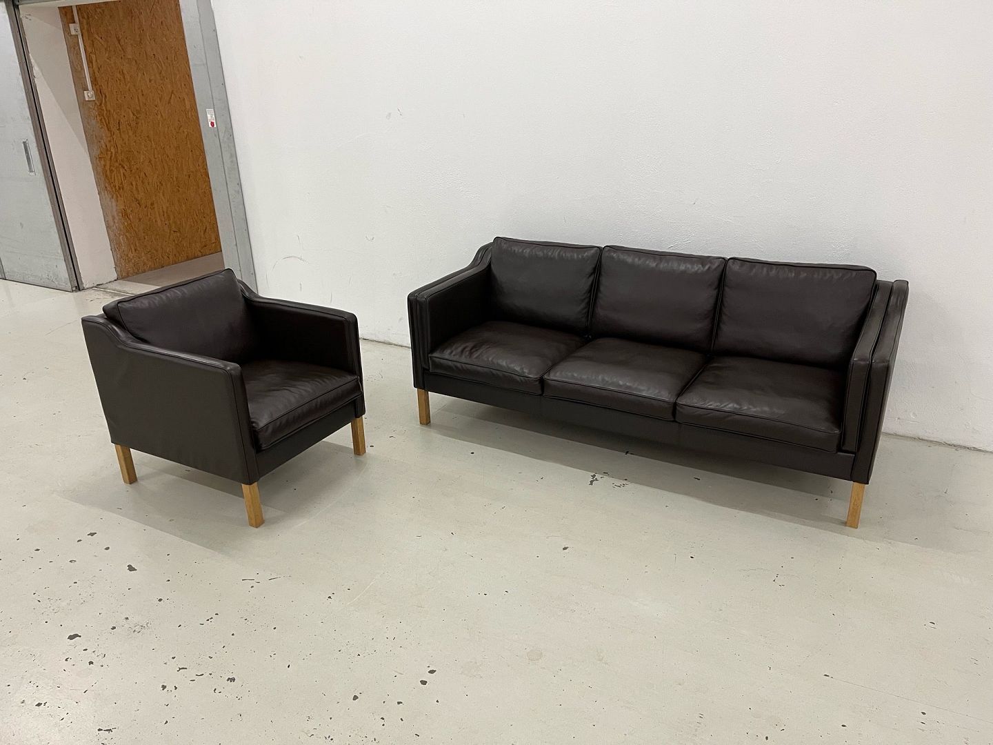 Ilva DC3600 Sofagarnitur für 3 Personen. Sofa und Sessel in dunkelbraunem Leder und mit Beinen aus Eichenholz. Neupreis 28.999,- Sofa und Sessel können auf Wunsch auch einzeln verkauft werden, Sofa 13.000,- Sessel 5.000,- Die Garnitur ist wie neu und nahezu unbenutzt, gerade gereinigt und mit Leder behandelt. Sitze: Kaltschaum mit Duntop-Kissen. Rückenkissen: Daunengranulat. Sofamaße. Länge 200 cm. Breite 82 cm. Höhe 75 cm. Sitztiefe 52 cm. Sitzhöhe 44 cm Unser Konzept. Ankauf neuerer/gebrauchter Möbel. Gründliche Reinigung und Behandlung. Besichtigung nach Vereinbarung. Kostenlose Lieferung in ganz Dänemark bis zur Bordsteinkante bei Einkäufen über 10.000,- und weltweit zu günstigen Preisen.