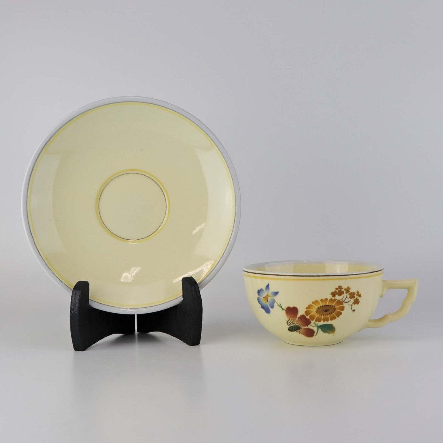 Tekop med underkop i fajance fra stellet Elisabeth.