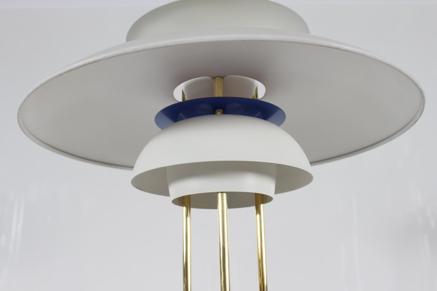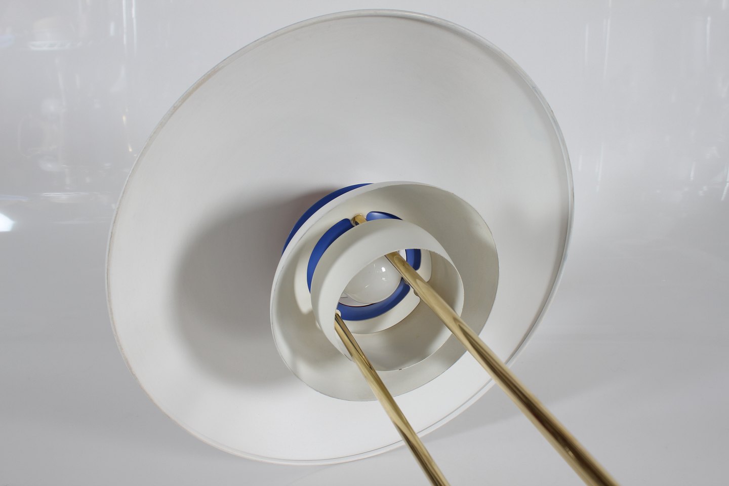 m/fod af messing og hvidlakerede skærme