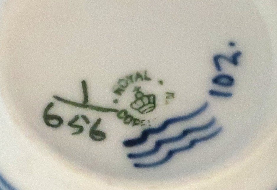 Königliches Kopenhagen. Musselmalet, Halbspitze. Teetasse. Modell 656. (1 Wahl). Hergestellt vor 1923.