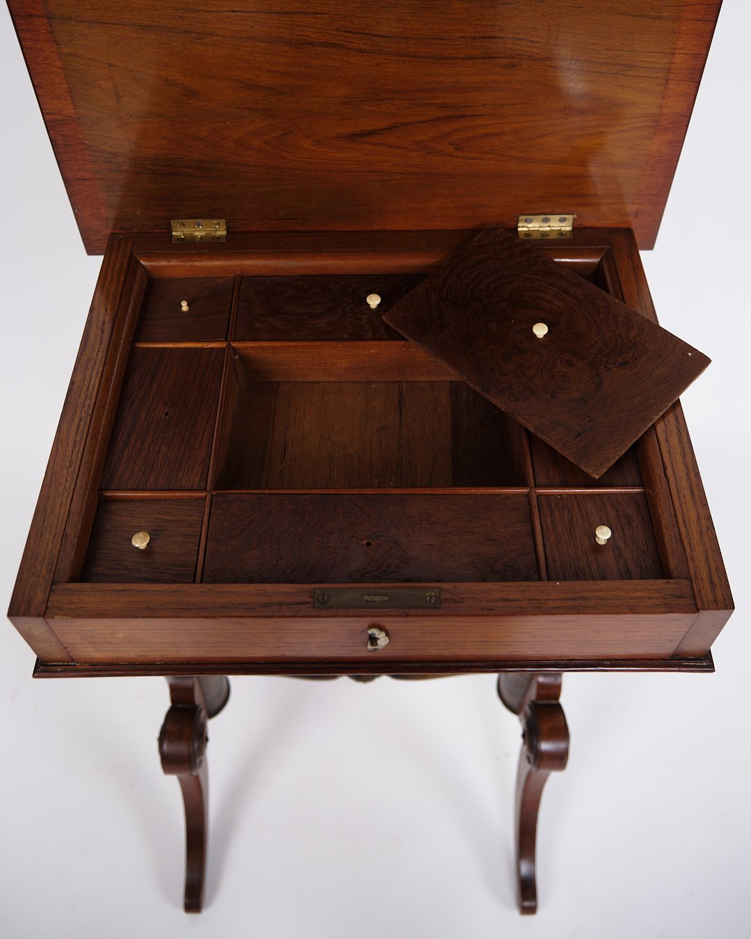 Text zugänglich auf Dänische: Antikt Sidebord Med Skuffe - Håndpoleret Mahogni - Drejede Ben - År 1880erne