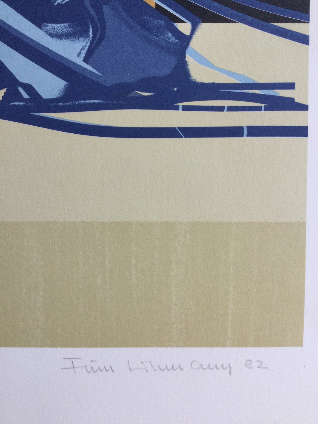 Text zugänglich auf Dänische: Farvelitografi af Finn Lohmann - Komposition 1982