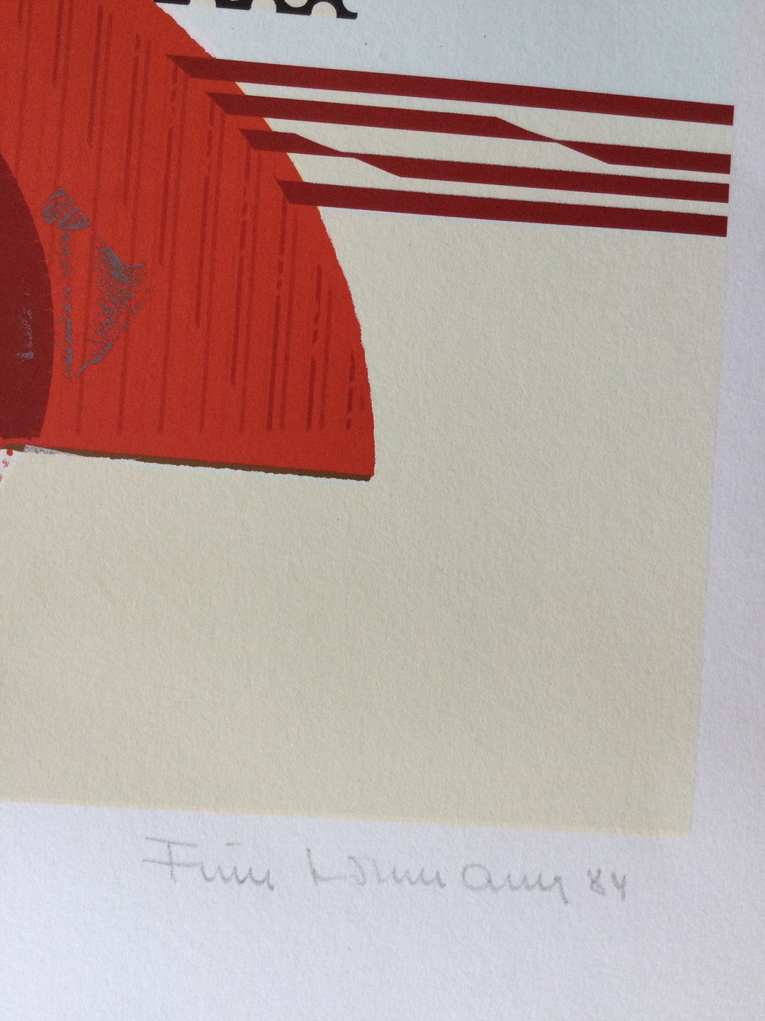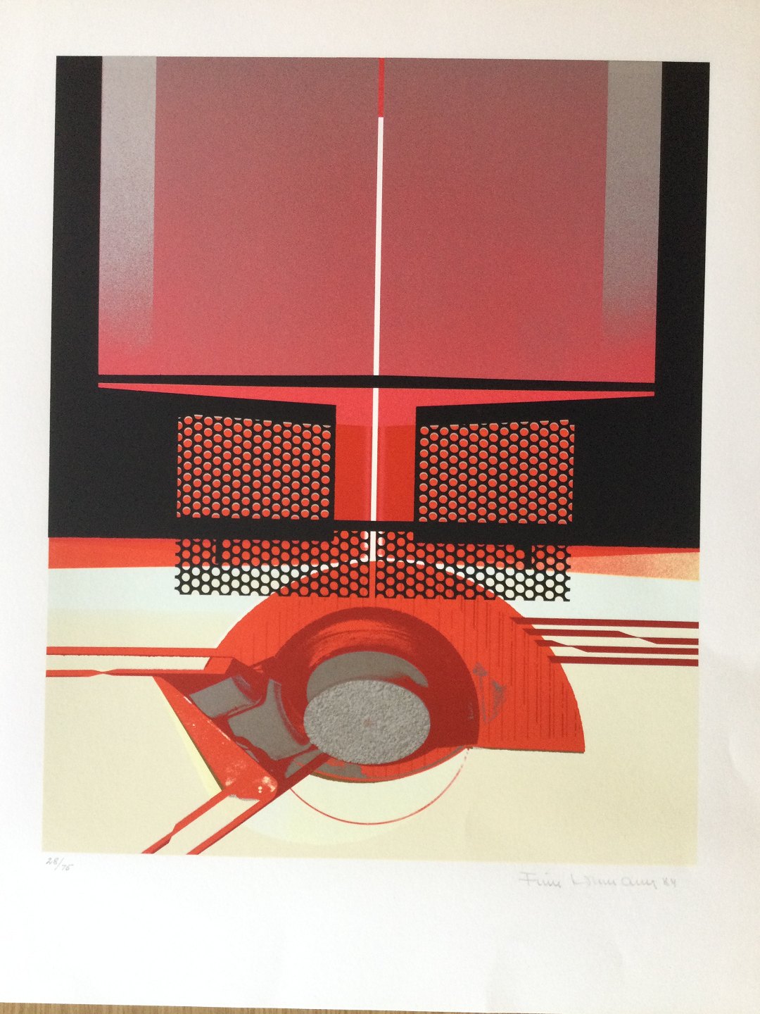 Text zugänglich auf Dänische: Farvelitografi af Finn Lohmann - Komposition 1984