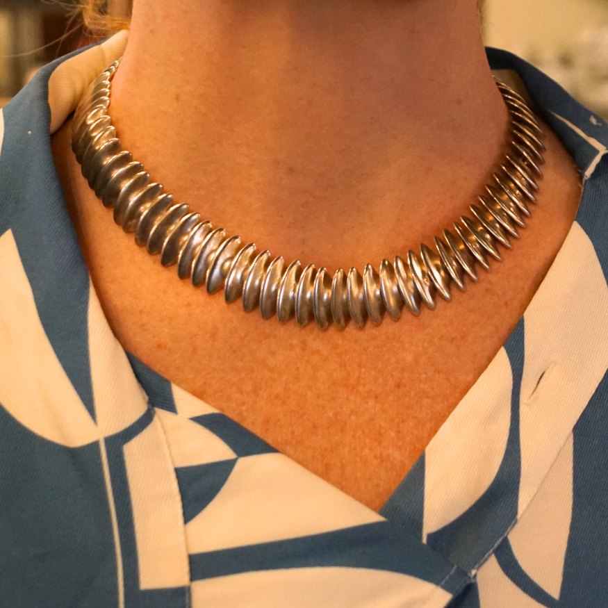 Text zugänglich auf Dänische: Bent Gabrielsen for Hans Hansen; Leddelt halskæde i sterling sølv.