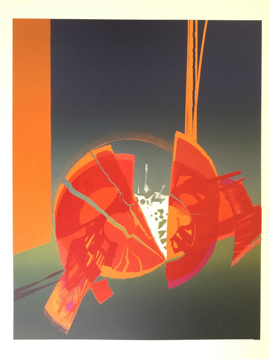 Text zugänglich auf Dänische: Farvelitografi af Finn Lohmann - Komposition 1976.