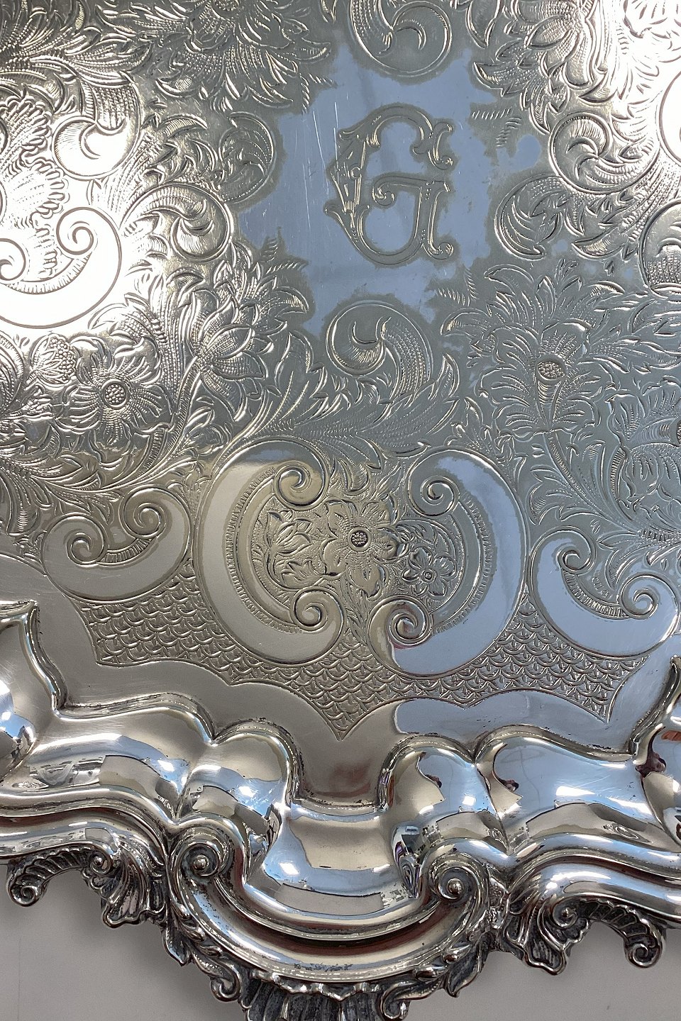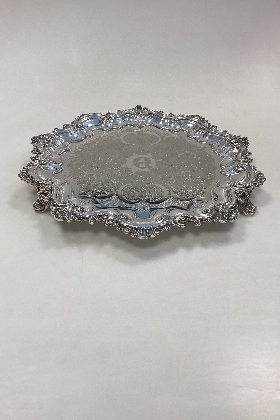 Ornamenteret Engelsk Sølvplet Serveringsbakke med ben