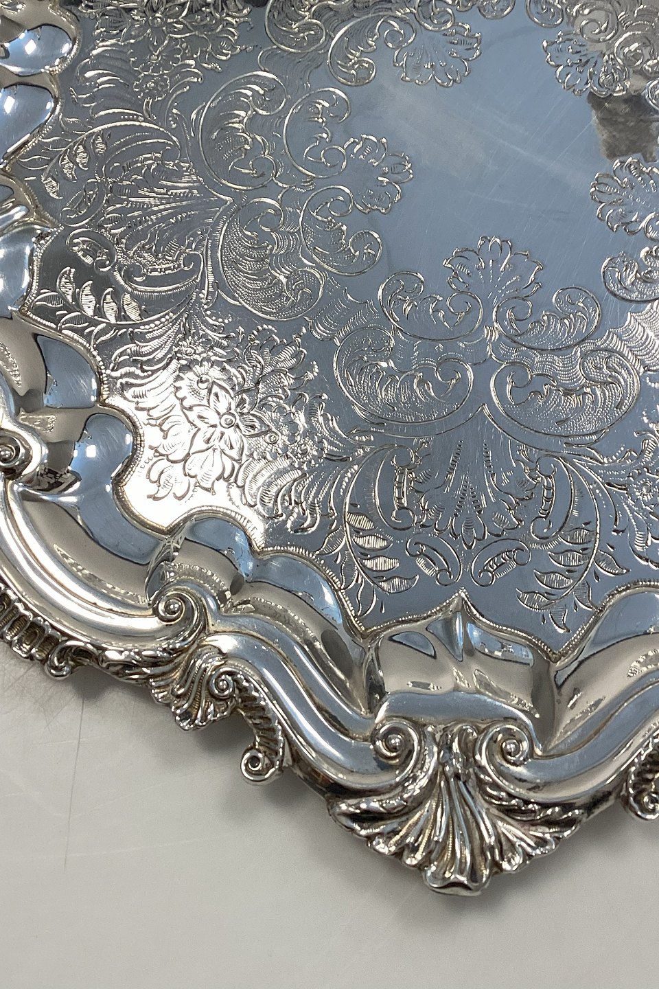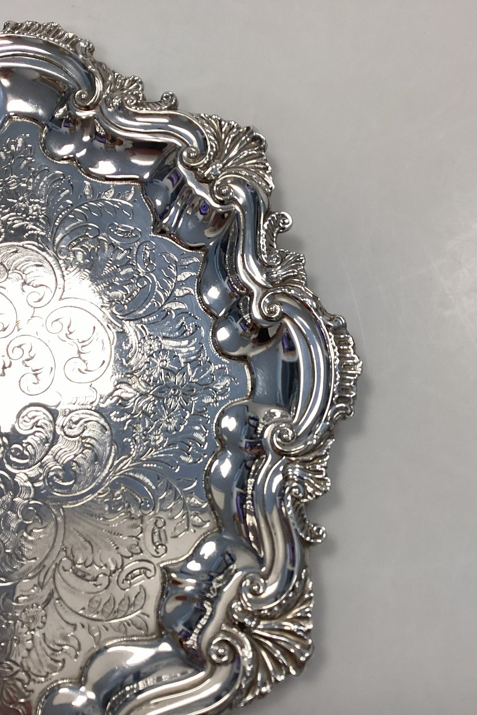 Ornamenteret Engelsk Sølvplet Serveringsbakke