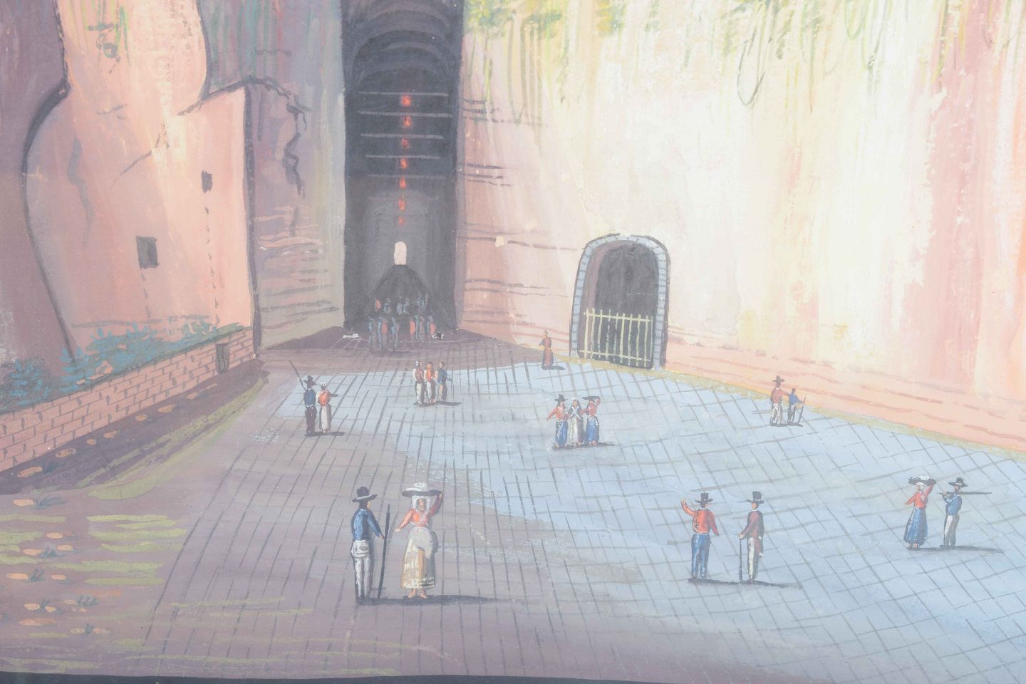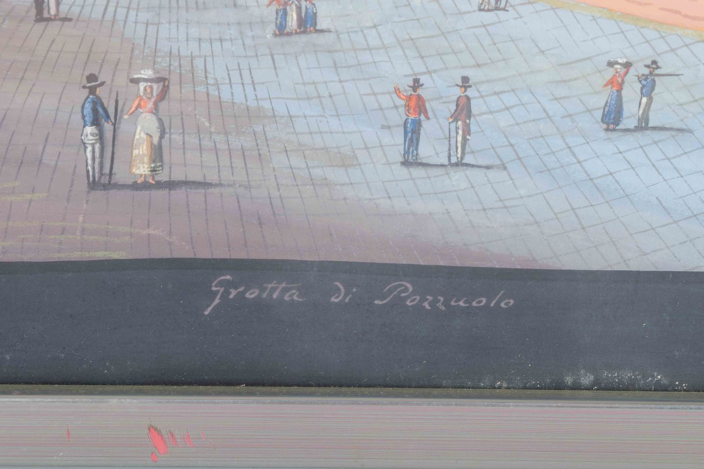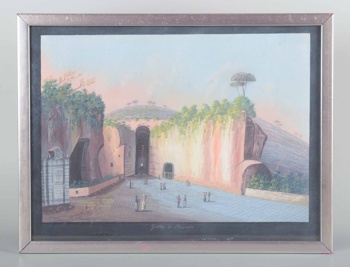 Grotta di Pozzuolo, også kendt som Grotta di Pozzuoli eller Crypta Neapolitana, er en antik romersk tunnel, der forbinder Napoli med Pozzuoli. Den var et yndet motiv blandt rejsende kunstnere i 1700- og 1800-tallets Italien, hvor romantiske og arkæologiske emner var højt værdsatte. Gouacheværker som dette blev ofte udført som souvenirbilleder til det dannede publikum på “The Grand Tour”.