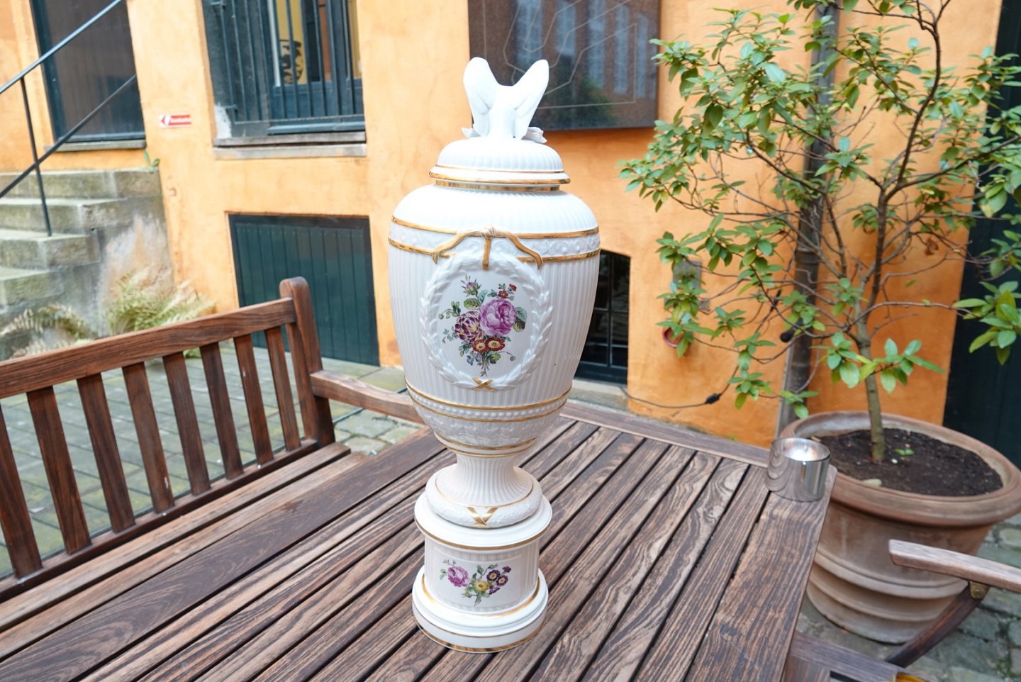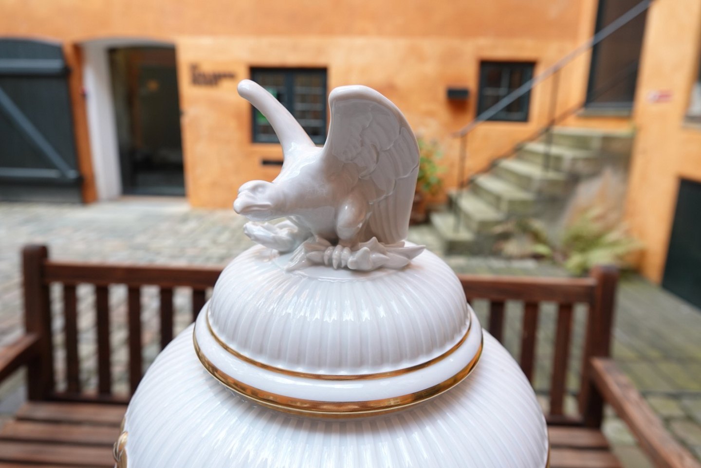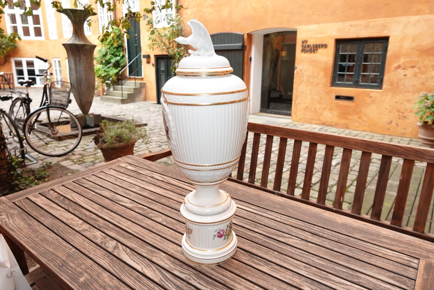 Kæmpe lågkrukke med ørn på toppen